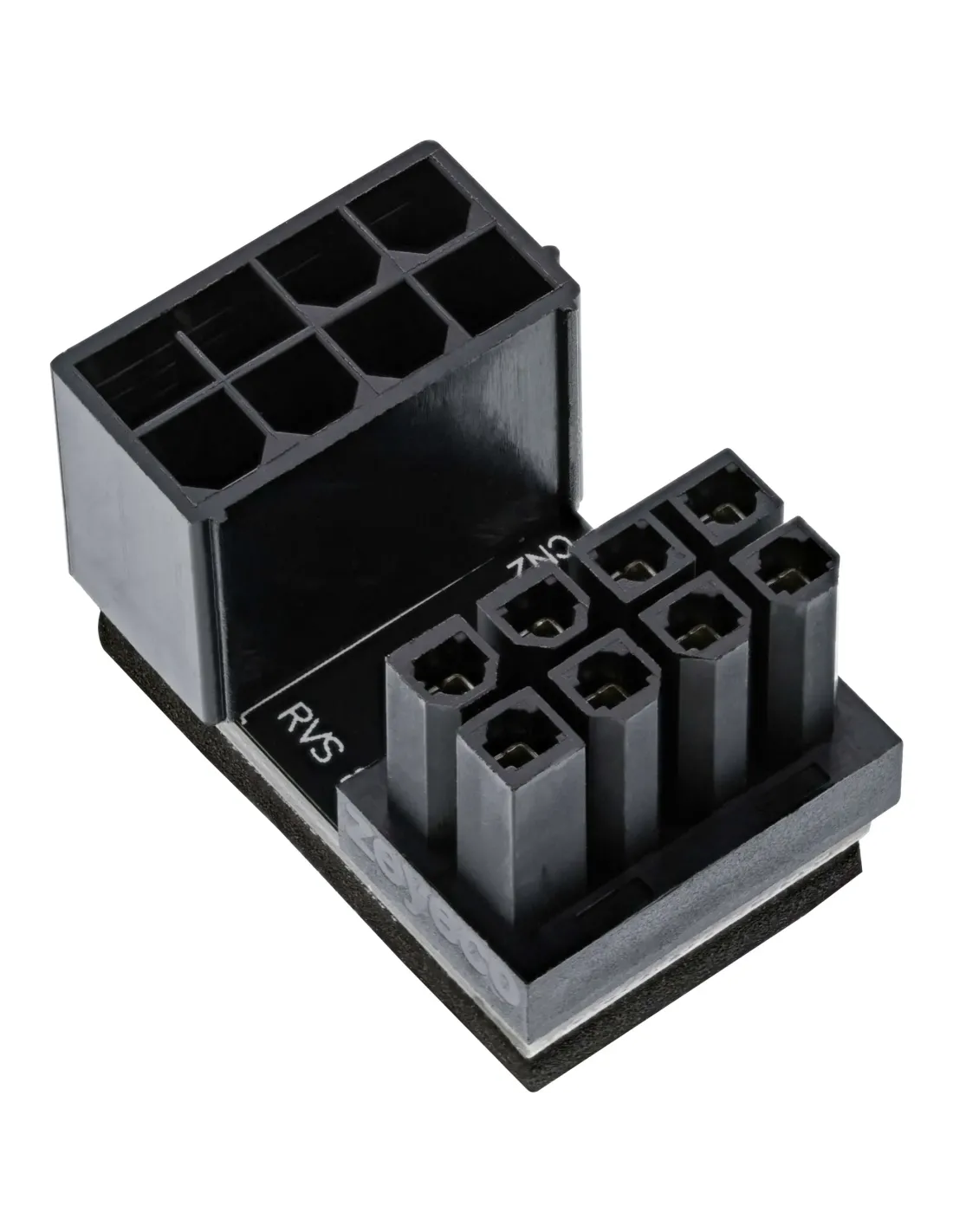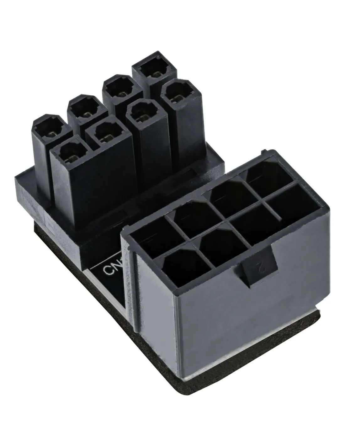 Adattatore interno a 180° per la connessione di alimentazione della scheda grafica PCIe a 8 pin. L'adattatore permette di reinstradare e indirizzare ordinatamente i cavi interni di connessione all'alimentazione di una scheda grafica. Versione ritorta dell'adattatore. Si prega di fare riferimento alla codifica esatta e all'orientamento dei connettori per vedere se l'adattatore è adatto alla vostra applicazione.