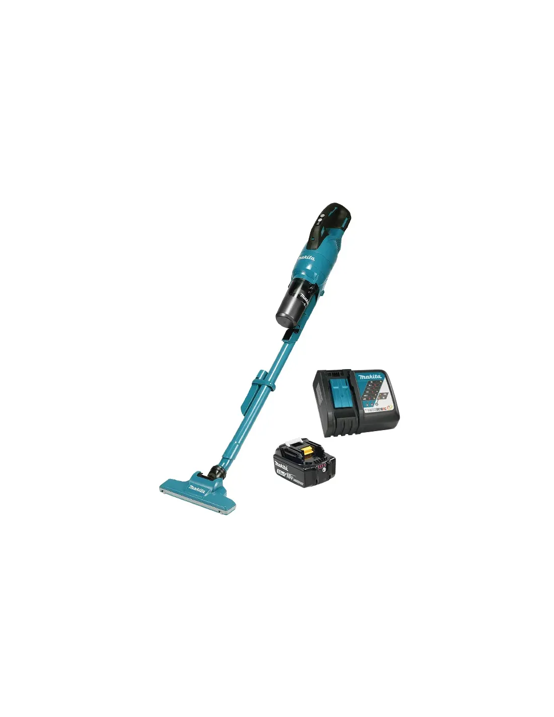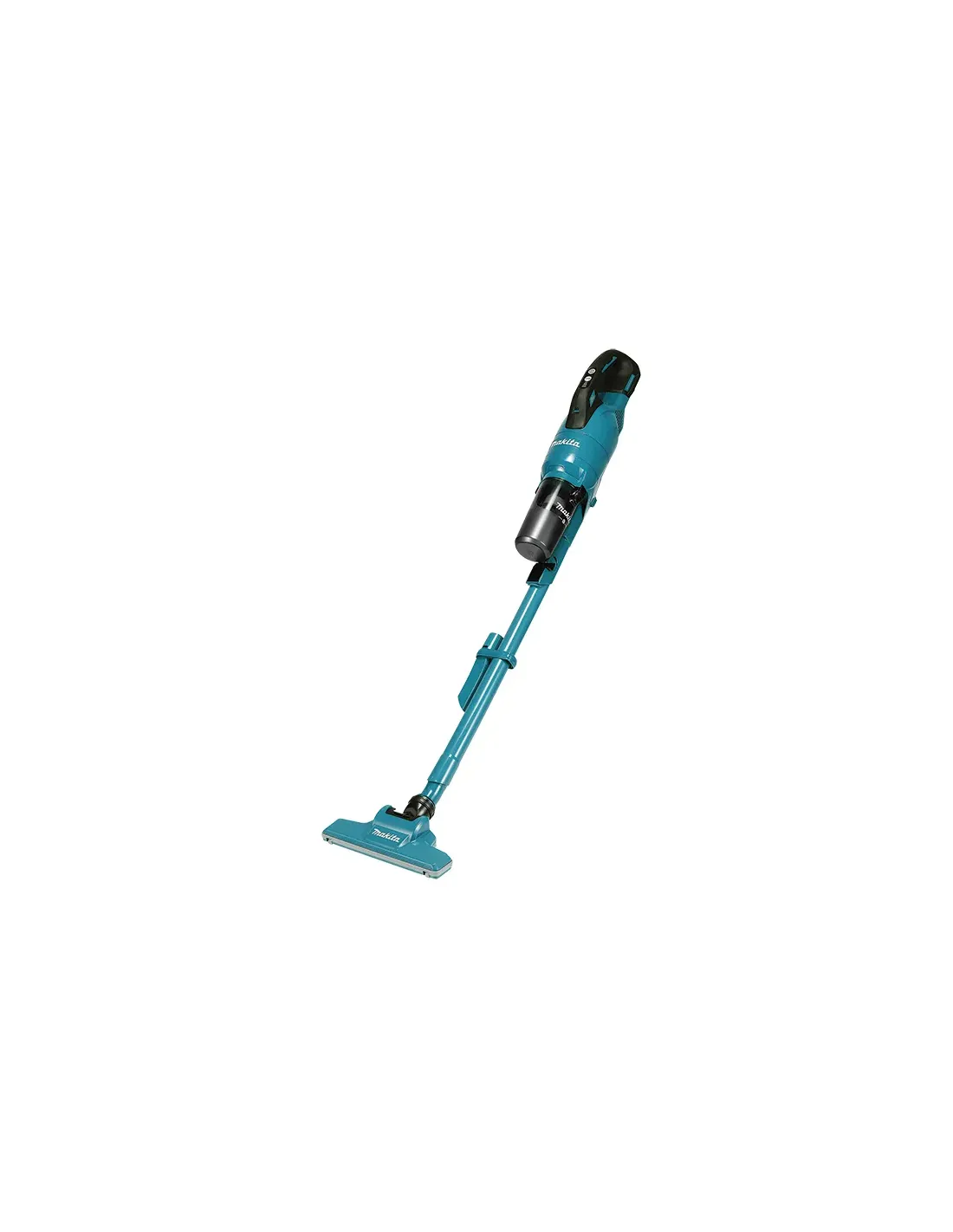Makita DCL286FRF. Tipo di prodotto: Aspirapolvere a bastone 2 in 1, Tipo di contenitore della polvere: Senza sacchetto, Colore del prodotto: Nero, Blu. Tipo di pulizia: Secco, Sistema di filtraggio dell'aspirapolvere: Ciclonico, Metodo di separazione dello sporco: Ciclonico/filtraggio. Controllo dell'energia: Elettronico, Lunghezza del manico: Impugnatura ad anello. Alimentazione: Batteria, Massima potenza in entrata: 100 W, Tecnologia batteria: Ioni di Litio. Quantità per pacco: 1 pz