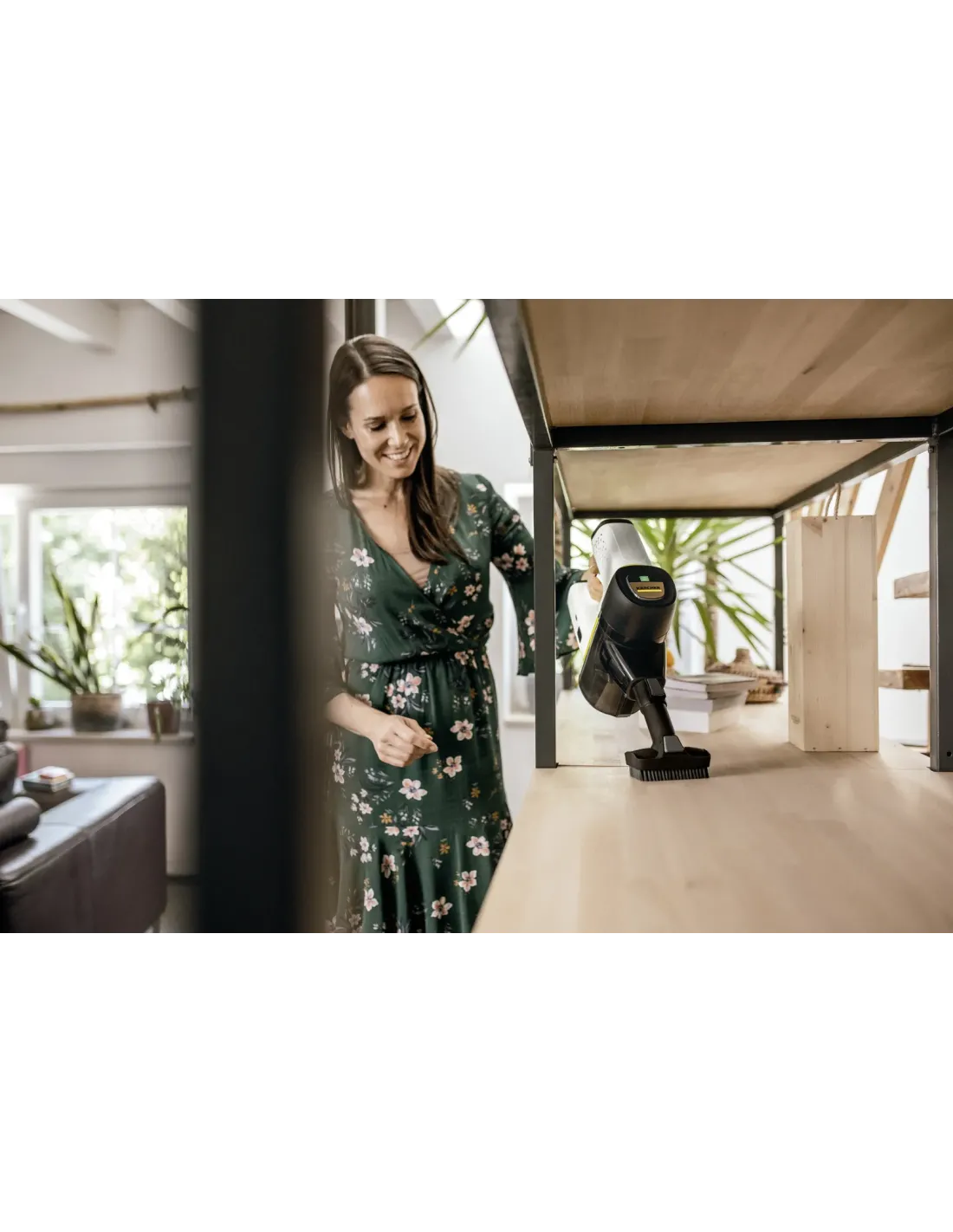 Pulire può essere davvero così semplice: con l'aspirapolvere VC 6 Cordless ourFamily, passare l'aspirapolvere diventa un vero piacere. Le numerose funzionalità intelligenti includono lo svuotamento del contenitore della polvere con 1 clic, la funzione boost, il design ergonomico per la pulizia in aree difficili da raggiungere e le luci a LED sulla bocchetta attiva per pavimenti, che rendono la polvere più visibile e garantiscono un'aspirazione affidabile dello sporco. Altri vantaggi includono il volume di funzionamento silenzioso e un display dello stato della batteria di facile lettura, che mostra in qualsiasi momento lo stato della batteria e i messaggi rilevanti. C'è anche la comoda funzione Power Lock, che elimina la necessità di tenere costantemente premuto il pulsante di accensione. Grazie al supporto da parete con funzione di ricarica integrata, riporre e caricare l'aspirapolvere non potrebbe essere più semplice. Il potente motore BLDC (250 W) combinato con una tensione della batteria da 25,2 V elimina il duro lavoro dell'aspirazione.
