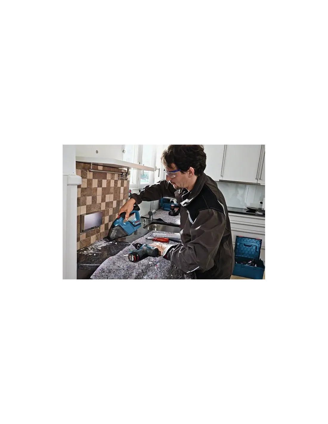Bosch GAS 10,8 V-LI. Tipo di pulizia: Secco, Metodo di separazione dello sporco: Filtro, Flusso d'aria: 900 l/min. Tipo di contenitore della polvere: Senza sacchetto, Colore del prodotto: Blu. Larghezza: 77 mm, Profondità: 273 mm, Altezza: 170 mm. Capacità del contenitore: 0,35 L