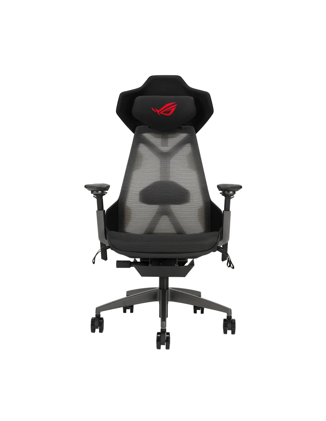 ASUS ROG Destrier Ergo. Tipo di seduta: Seduta in rete, Tipo di schienale: Schienale a rete, Colore del sedile: Nero. Larghezza: 720 mm, Profondità: 840 mm, Altezza (min.): 134 cm. Peso dell'imballo: 30,9 kg