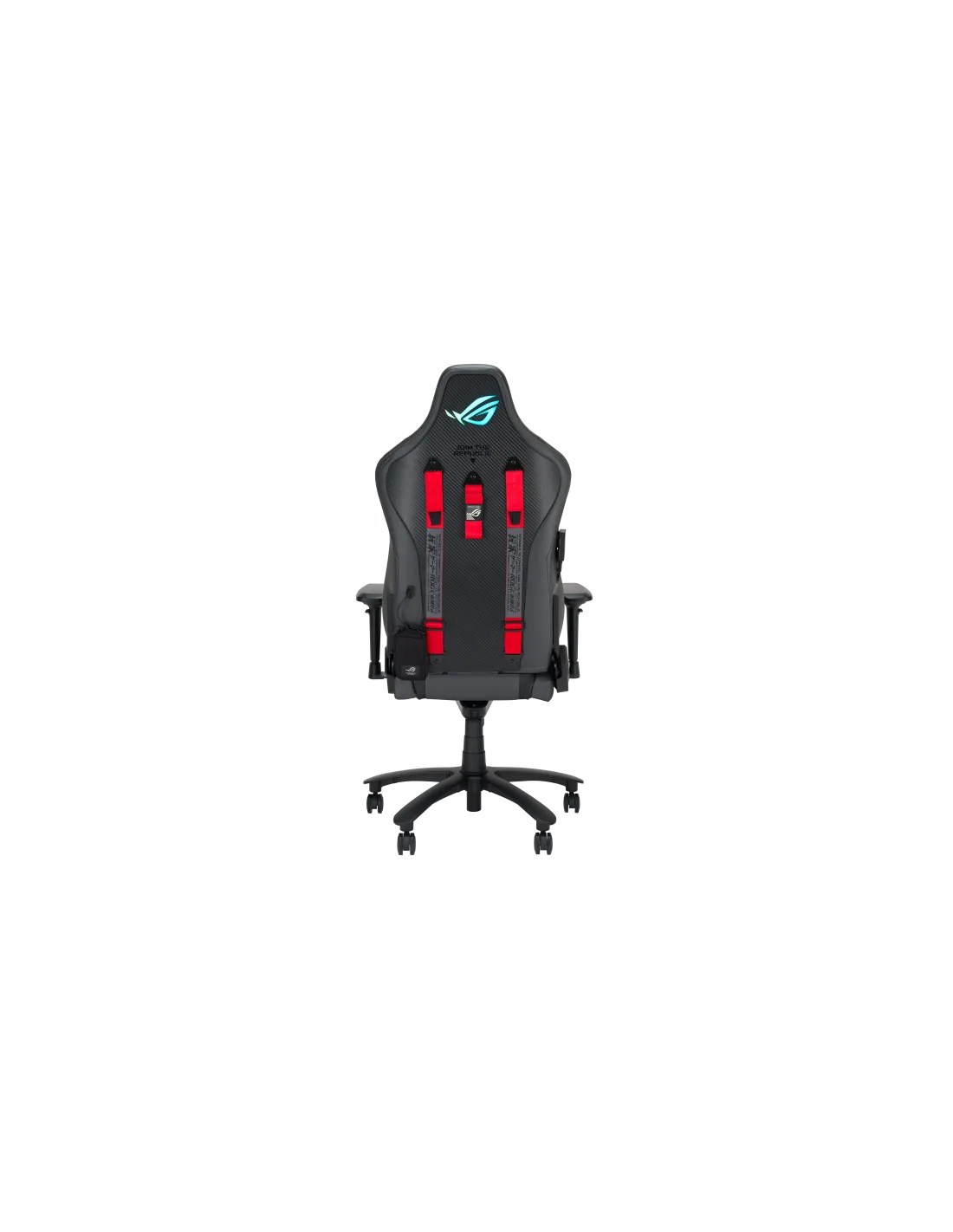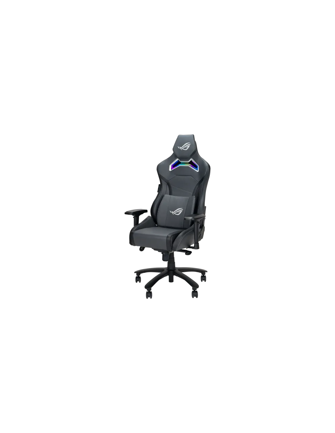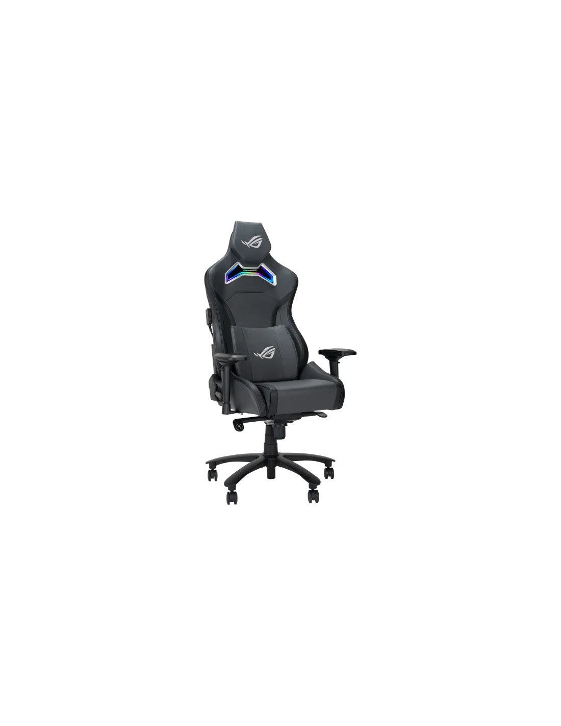 Sedia da gaming ROG Chariot X in stile auto da corsa, dotata di poggiatesta regolabile in schiuma ad alta densità, supporto lombare in memory foam, braccioli 4D, meccanismo di inclinazione, resistente meccanismo di sollevamento a gas di Classe 4 e resistente pelle PU di alta qualità per un'esperienza di gioco premium.