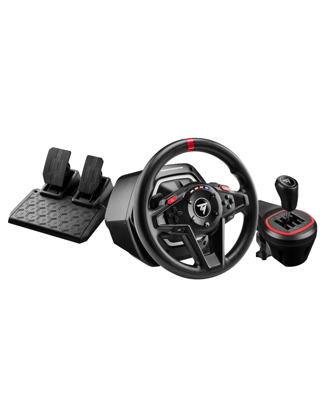 Thrustmaster T128 Shifter Pack. Tipo di dispositivo: Sterzo + Pedali, Piattaforme di gioco supportate: PC, Xbox, Tasti funzione per il controllo del gioco: Pulsante del freno a mano, View button, Setting button, Pulsanti direzionali, Pulsante Menu,.... Tecnologia di connessione: Cablato, Interfaccia dispositivo: USB, Connettore USB: USB tipo-C. Colore del prodotto: Nero. Alimentazione: AC, Voltaggio di ingresso: 100 - 240 V, Corrente d'uscita: 2,6 A. Larghezza: 260 mm, Profondità: 300 mm, Altezza: 280 mm