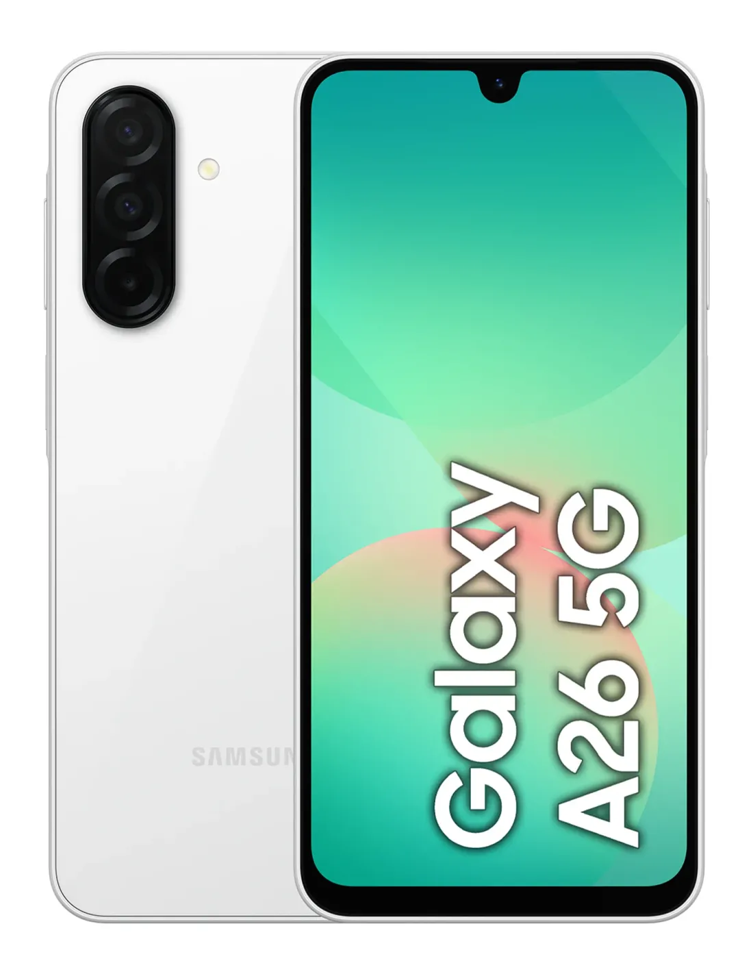 Samsung Galaxy A26 5G, Smartphone con Funzioni intelligenti, Display Super AMOLED 6.7”, 6GB RAM, 128GB, Batteria 5.000 mAh, memoria espandibile, White. Dimensioni diagonale schermo: 17 cm (6.7"), Risoluzione del display: 1080 x 2340 Pixel. Famiglia processore: Samsung Exynos. Capacità della RAM: 6 GB, Capacità memoria interna: 128 GB. Risoluzione fotocamera posteriore (numerico): 50 MP, Tipo di fotocamera posteriore: Tripla fotocamera. Capacità della scheda SIM: Dual SIM ibrida. Sistema operativo incluso: Android 15. Capacità della batteria: 5000 mAh. Colore del prodotto: Bianco. Peso: 200 g