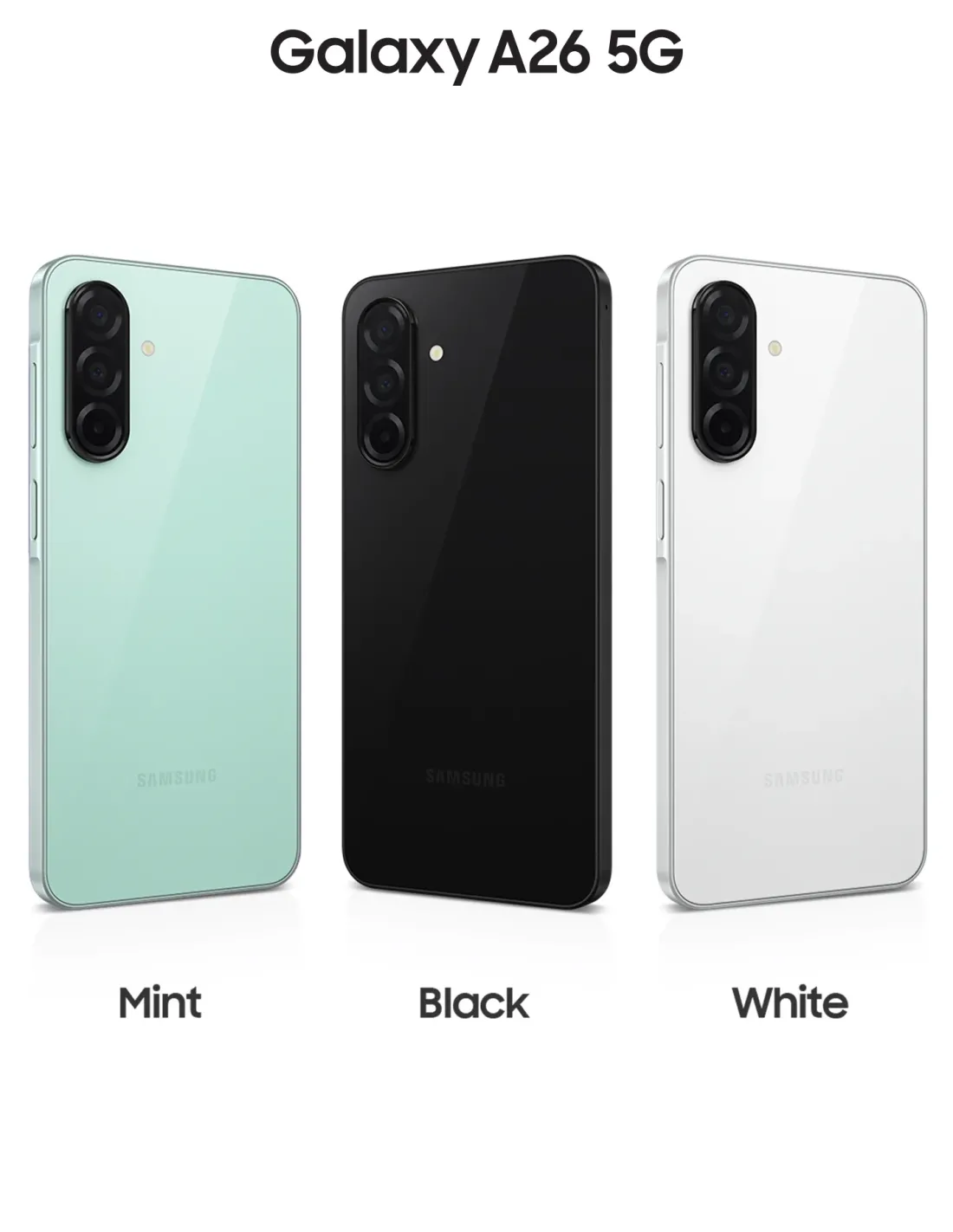 Dai una marcia in più al tuo stile con Galaxy A26 5G. Grazie alla sua struttura sottile potrai tenerlo in mano in tutta comodità, mentre la parte posteriore in vetro lucido e il layout essenziale della fotocamera attireranno gli sguardi di tutti. Disponibile in White, Mint e Black.