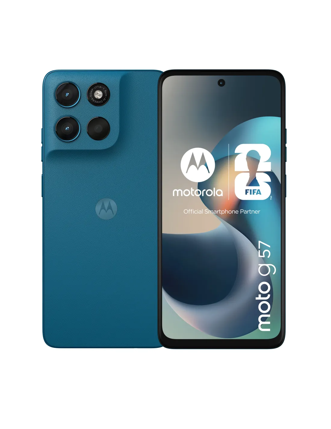 Scopri moto g57: lo smartphone che unisce creatività e resistenza. La fotocamera Sony LYTIA™ 600 da 50 MP con moto ai cattura immagini nitide e luminose in ogni condizione. Affronta ogni avventura grazie alla certificazione Military Standard e protezione IP64, mentre il nuovo Snapdragon® 6s Gen 4 assicura prestazioni fluide. Display ultra-luminoso, audio Dolby Atmos® e ricarica TurboPower™ 30W completano un’esperienza pensata per seguirti ovunque.