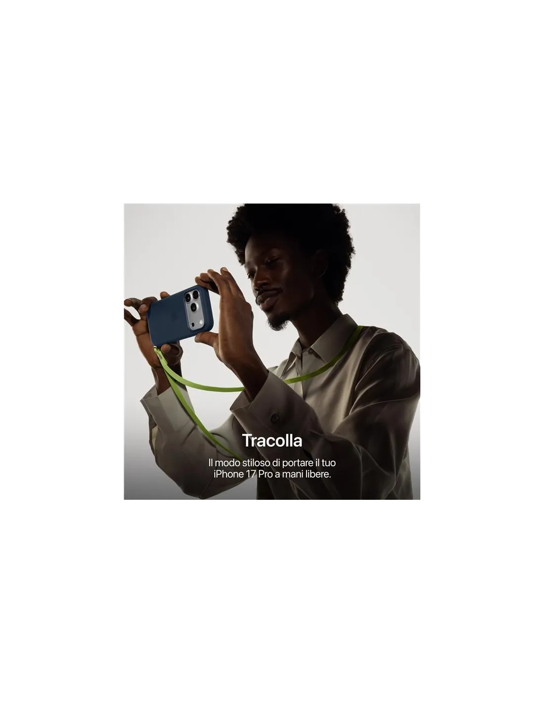 Tasto Azione. La via più breve verso la tua funzione preferita. Tienilo premuto per usare la funzione che vuoi fra Silenzioso, Traduci, Comando rapido e altre ancora.Uno zoom che va ben oltre.Il sistema di fotocamere di iPhone 17 Pro è un concentrato di innovazione. Il teleobiettivo è il più potente mai visto su un iPhone, con una lunghezza focale massima equivalente a 200 mm, la nuova generazione del nostro design a tetraprisma e un sensore più ampio del 56%. Grazie a un’estensione totale pari a 16x, lo zoom ottico ti apre nuove frontiere creative e dà più profondità alle tue inquadrature, per realizzare video incredibili e foto spettacolari anche con poca luce.Pro fino all’ultimo pixel.Foto con poca luce e in modalità Notte. Immagini nitide, dettagliate, brillanti e con colori naturali, anche quando è buio.