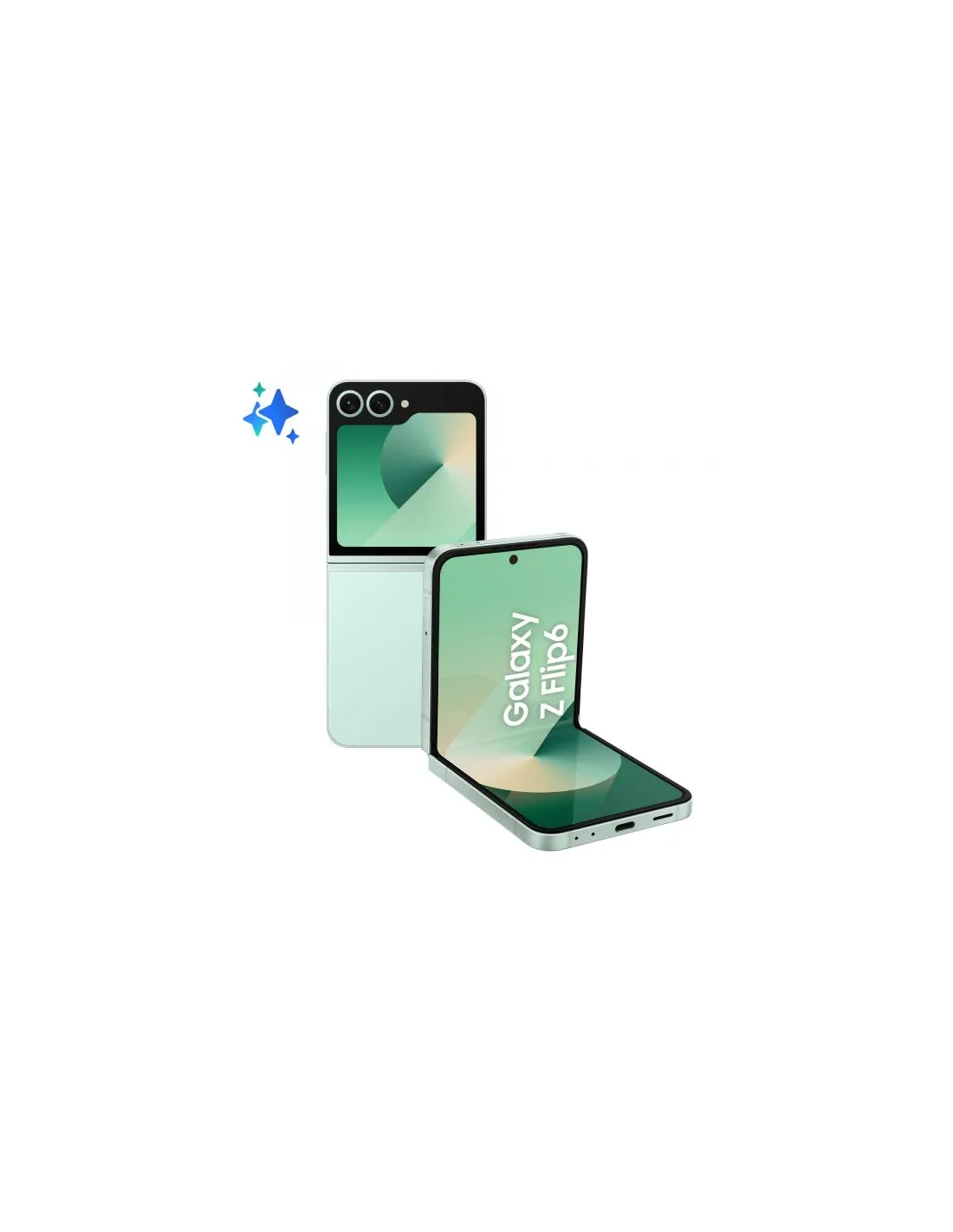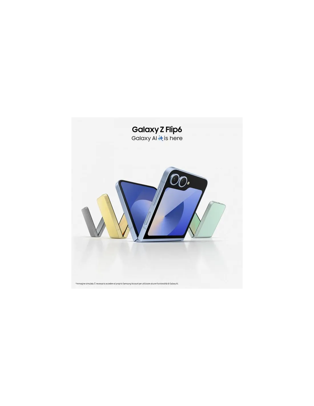 Samsung Galaxy Z Flip6 Smartphone AI, 512GB, RAM 12GB, Display 3,4" SAMOLED/6,7" Dynamic AMOLED 2X, Mint. Dimensioni diagonale schermo: 17 cm (6.7"), Risoluzione del display: 2640 x 1080 Pixel. Famiglia processore: Snapdragon, Modello del processore: 8 Gen 3. Capacità della RAM: 12 GB, Capacità memoria interna: 512 GB. Risoluzione fotocamera posteriore (numerico): 50 MP, Tipo di fotocamera posteriore: Doppia fotocamera. Capacità della scheda SIM: Doppia SIM. Sistema operativo incluso: Android 14. Capacità della batteria: 4000 mAh. Colore del prodotto: Colore menta. Peso: 187 g