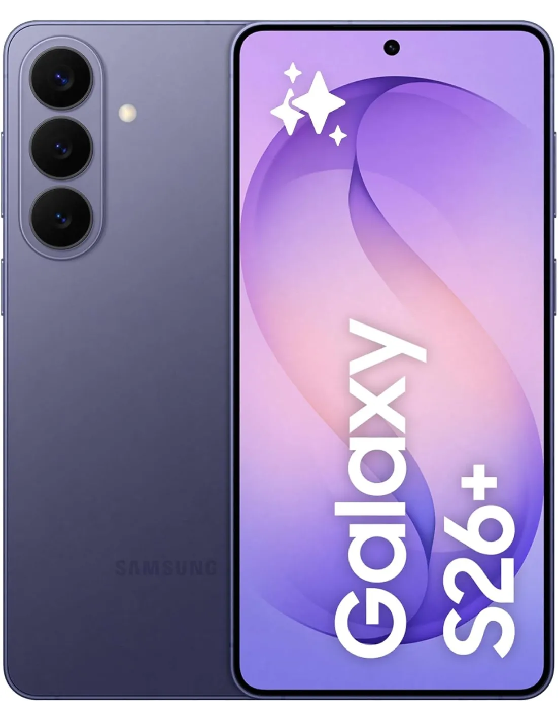 Samsung Galaxy S26+ Smartphone AI, 512GB, Processore avanzato, Assistente Foto, Creative Studio, Camera 50 MP, 4900 mAh, Cobalt Violet. Dimensioni diagonale schermo: 17 cm (6.7"), Risoluzione del display: 3120 x 1440 Pixel. Famiglia processore: Samsung Exynos, Modello del processore: 2600. Capacità della RAM: 12 GB, Capacità memoria interna: 512 GB. Risoluzione fotocamera posteriore (numerico): 50 MP, Tipo di fotocamera posteriore: Tripla fotocamera. Capacità della scheda SIM: Doppia SIM. Sistema operativo incluso: Android 16.0. Capacità della batteria: 4900 mAh. Colore del prodotto: Viola. Peso: 190 g