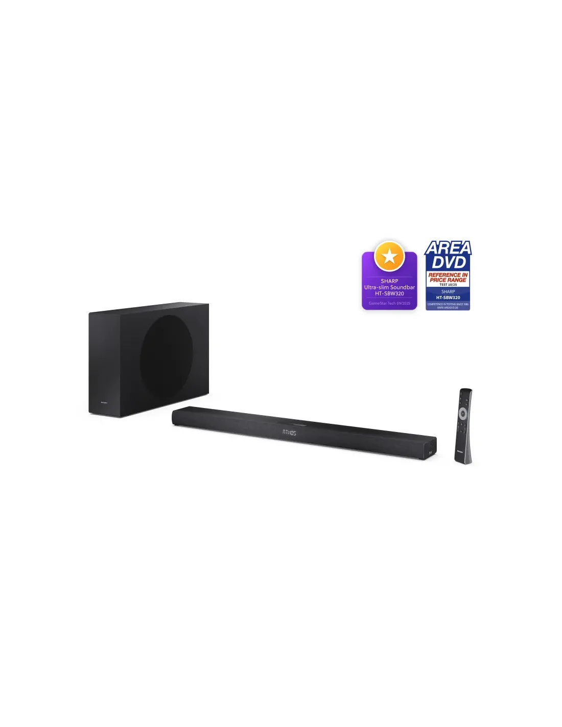 Sharp HT-SBW320. Sistema audio: 2.1 canali, Potenza in uscita (RMS): 360 W. Diametro del tweeter: 3,18 cm (1.25"), Diametro del woofer: 13,3 cm (5.25"). Diametro del woofer (subwoofer): 13,3 cm (5.25"). Colore del prodotto: Nero, Certificazione: UKCA/CE (RED, RoHS, ErP), REACH/PAH/SCCP. Tecnologia di connessione: Con cavo e senza cavo