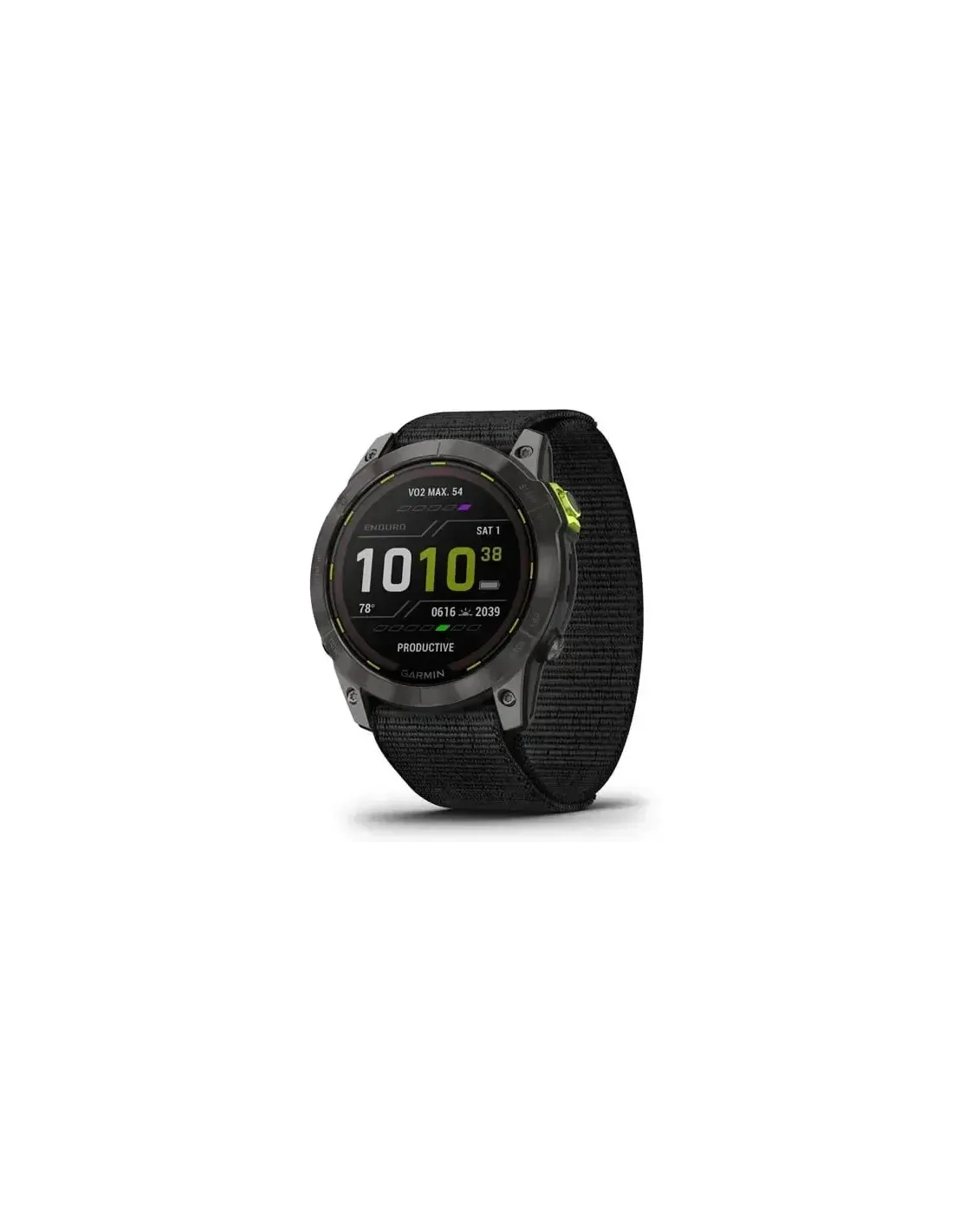 Garmin Enduro 2. Dimensioni diagonale schermo: 3,56 cm (1.4"), Tecnologia display: MIP, Risoluzione del display: 280 x 280 Pixel, Touch screen. Memoria flash: 32 GB. Wi-Fi. GPS (satellitare). Peso: 70 g. Materiale cinturino: Nylon, Colore cinturino: Nero, Dimensione del cinturino: Taglia unica