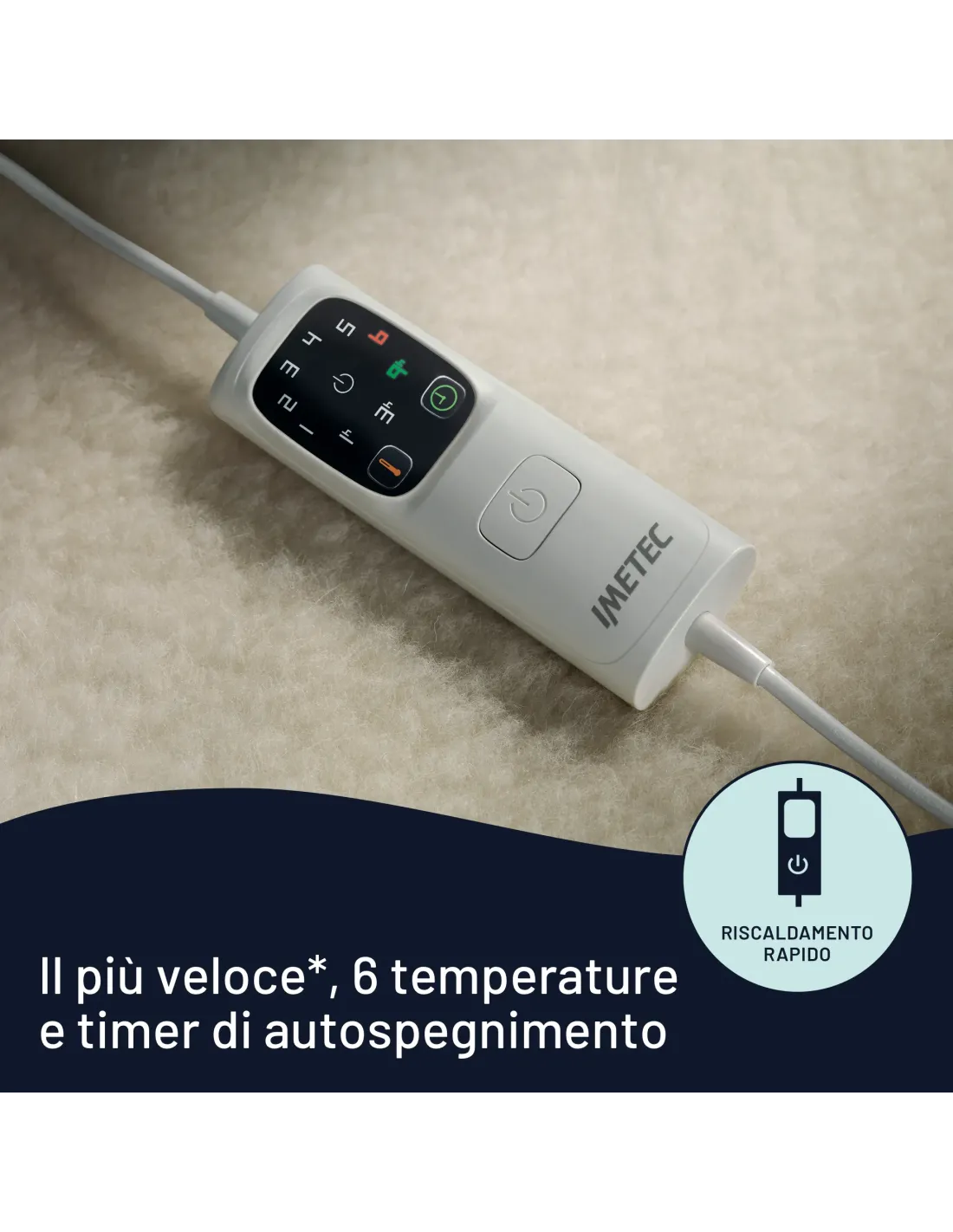 Imetec Scaldasonno Adapto singolo 150 x 80 cm, basso consumo, riscaldamento rapido, temperatura personalizzata, 100% lana e