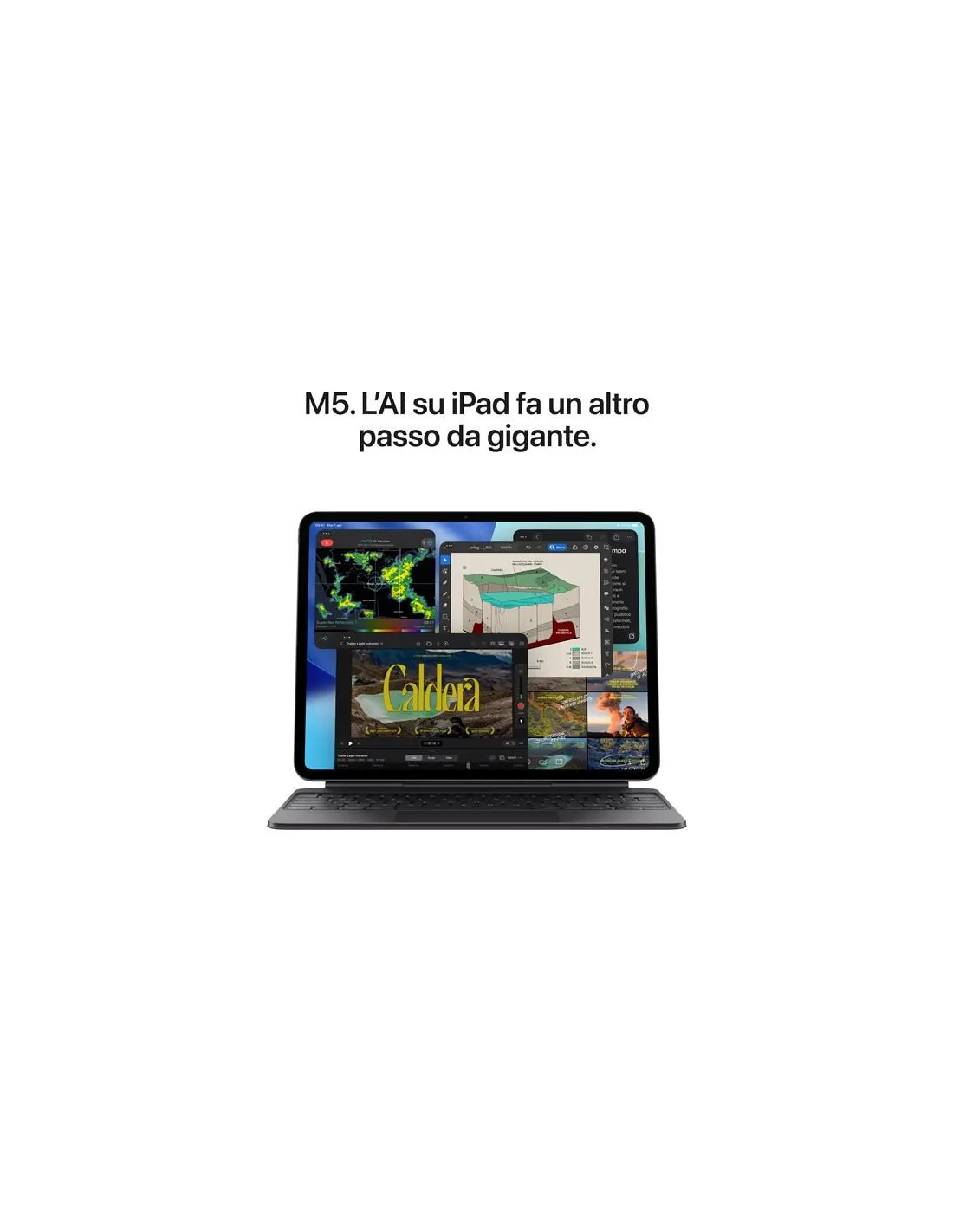 - PERFORMANCE E SPAZIO DI ARCHIVIAZIONE — iPad Pro con chip M5 ha una velocità mai vista e la potenza dell’AI on device per tutto quello che fai. Ti dà fino a 2TB di archiviazione, 16GB di memoria e i Neural Accelerator per prestazioni AI di livello superiore.