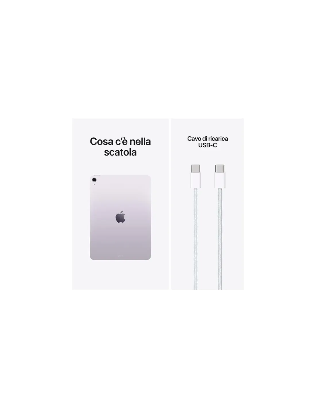 Apple iPad Air 11'' Wi-Fi 128GB - ViolaiPad Air. Progettati per Apple Intelligence.iPad Air 11". Progettato per Apple Intelligence. iPad Air, ora con i superpoteri di M4. Incredibile, nelle prestazioni e nel prezzo. Ha uno splendido display Liquid Retina, una videocamera frontale Center Stage da 12MP per videochiamate perfette, iPadOS e il fulmineo Wi Fi 7. Inoltre puoi usarlo con Apple Pencil Pro, con la Magic Keyboard per iPad Air e con altri accessori, per lavorare, studiare, giocare e creare facilmente, anche in multitasking.Caratteristiche principali - PERCHÉ IPAD AIR – iPad Air con chip Apple M4 ti offre prestazioni ancora più scattanti e uno splendido design in due taglie superportatili. Ha le potenti funzioni di Apple Intelligence, uno spettacolare display Liquid Retina, Touch ID, fotocamere evolute e Wi Fi 7. - PERFORMANCE E SPAZIO DI ARCHIVIAZIONE – Il chip M4 ti dà una grafica evoluta e prestazioni straordinarie, per poter usare più app simultaneamente e gestire le attività AI più complesse. E con un giorno intero di autonomia, puoi continuare a lavorare e divertirti ovunque vai. Scegli fino a 1TB di archiviazione per app, musica, film e altro. - IPADOS + APP – Con le funzioni rivoluzionarie e il design intuitivo di iPadOS, le tue app girano a meraviglia e la tua produttività decolla. Il sistema flessibile di gestione delle finestre ti permette di organizzare e tenere sotto controllo ogni attività come mai prima d’ora. - APPLE INTELLIGENCE – Apple Intelligence è il sistema di intelligenza personale che rende più facile creare, comunicare e fare tutto ciò che vuoi, con funzioni di ultima generazione per la tutela della privacy. - DISPLAY LIQUID RETINA DA 11" – Lo splendido display Liquid Retina ha tecnologie evolute come il True Tone e l’ampia gamma cromatica P3, oltre a una riflettanza ridotta al minimo: per questo ti dà immagini assolutamente spettacolari. - CONNETTIVITÀ – Grazie al Wi Fi 7 con chip Apple N1 puoi contare su connessioni wireless fulminee. Puoi lavorare pressoché ovunque e trasferire in un attimo foto, documenti e video di grandi dimensioni - APPLE PENCIL E MAGIC KEYBOARD PER IPAD AIR – Con Apple Pencil Pro e Apple Pencil (USB C) puoi disegnare, prendere appunti e creare in modo preciso e intuitivo. La Magic Keyboard è comodissima per scrivere e ha un trackpad con feedback aptico. - FOTOCAMERE EVOLUTE – iPad Air ha una videocamera frontale Center Stage da 12MP ideale per selfie e videochiamate. La fotocamera posteriore da 12MP con grandangolo invece è perfetta per fare scansioni di documenti, scattare foto e girare video 4K. - SBLOCCA E PAGA CON TOUCH ID – Con Touch ID ti basta un tocco per sbloccare l’iPad Air, accedere alle app e pagare i tuoi acquisti in totale sicurezza con Apple Pay.M4. La potenza va più suuuuu.Il velocissimo chip M4 ha il 50% di memoria unificata in più, così il tuo iPad Air sarà un fulmine in tutto. È un concentrato di potenza al servizio dell’intelligenza artificiale: le funzioni che usi ogni giorno ti aiuteranno a fare quello che vuoi in modo ancora più rapido ed efficiente. E l’architettura della GPU ti offre prestazioni grafiche fenomenali per lavorare, guardare video in streaming, creare o giocare. In più, ha una batteria che dura tutto il giorno: un’efficienza niente male, no?iPadOS e le app. Ora sì che si vola.Lo splendido design Liquid Glass dal look sorprendente è solo una delle tante incredibili innovazioni di iPadOS 26 che portano la produttività di iPad Air a un livello mai visto. Il sistema di gestione delle finestre è stato riprogettato per offrirti ancora più flessibilità ed efficienza. Puoi usare app professionali, lanciarti in giochi ad alte prestazioni e affrontare ogni progetto creativo con un’interfaccia immediata, pensata per i gesti touch.Apple Intelligence. Un aiuto sempre pronto per le cose di ogni giorno.iPad Air è progettato per Apple Intelligence, il sistema di intelligenza personale che rende più facile creare, comunicare e fare tutto ciò che vuoi. E grazie a funzioni di ultima generazione per la tutela della privacy, hai la certezza che nessuno potrà accedere ai tuoi dati, nemmeno Apple.