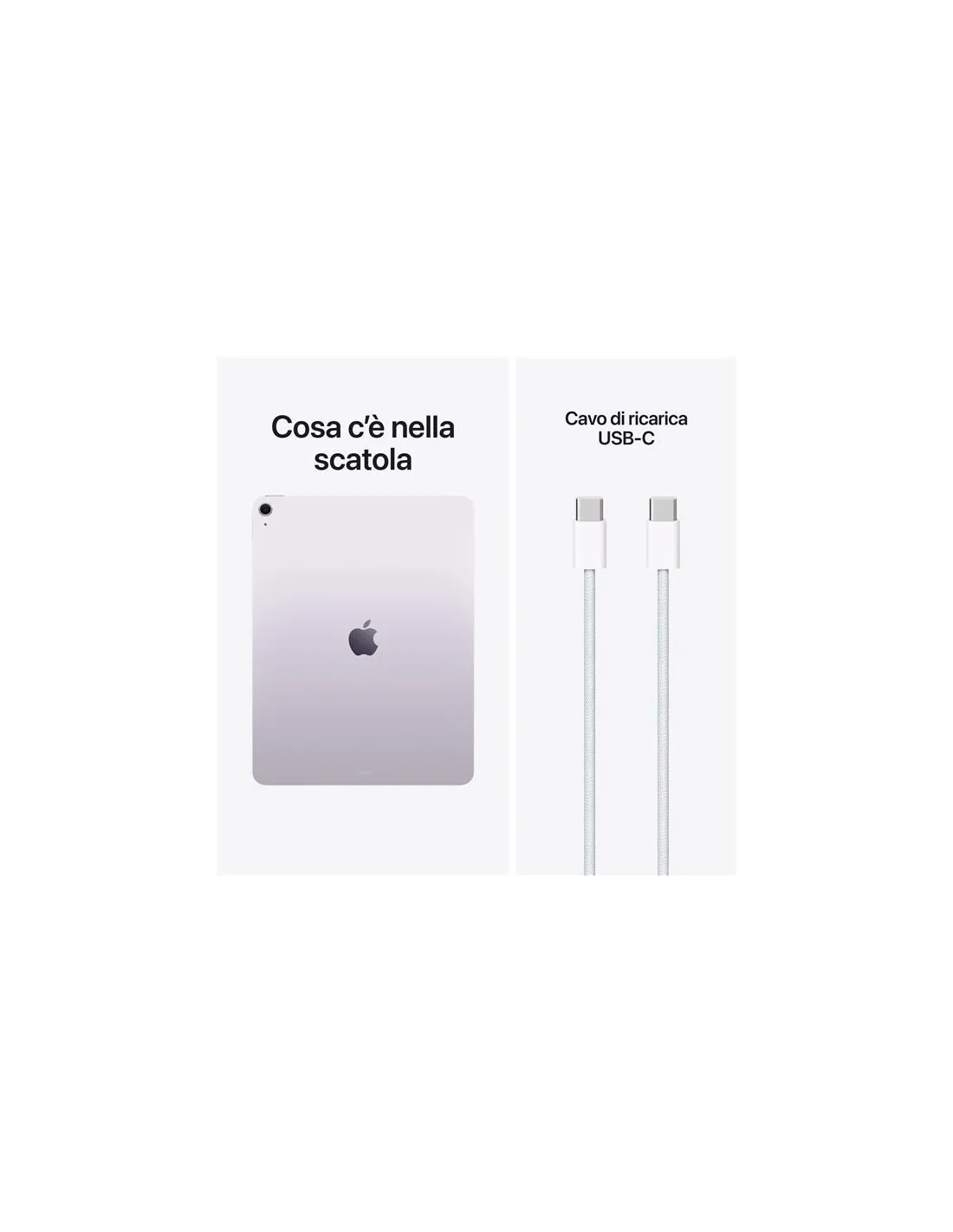 Apple iPad Air 13'' Wi-Fi 128GB - Viola. Dimensioni diagonale schermo: 33 cm (13"), Risoluzione del display: 2732 x 2048 Pixel, Tecnologia display: LED. Capacità memoria interna: 128 GB. Famiglia processore: Apple M, Modello del processore: M4. Memoria Interna: 12 GB. Risoluzione fotocamera posteriore (numerico): 12 MP, Tipo di fotocamera posteriore: Fotocamera singola, Risoluzione fotocamera frontale (numerico): 12 MP, Fotocamera frontale. Wi-Fi standard: Wi-Fi 7 (802.11be). Peso: 616 g. Sistema operativo incluso: iPadOS 26. Colore del prodotto: Viola