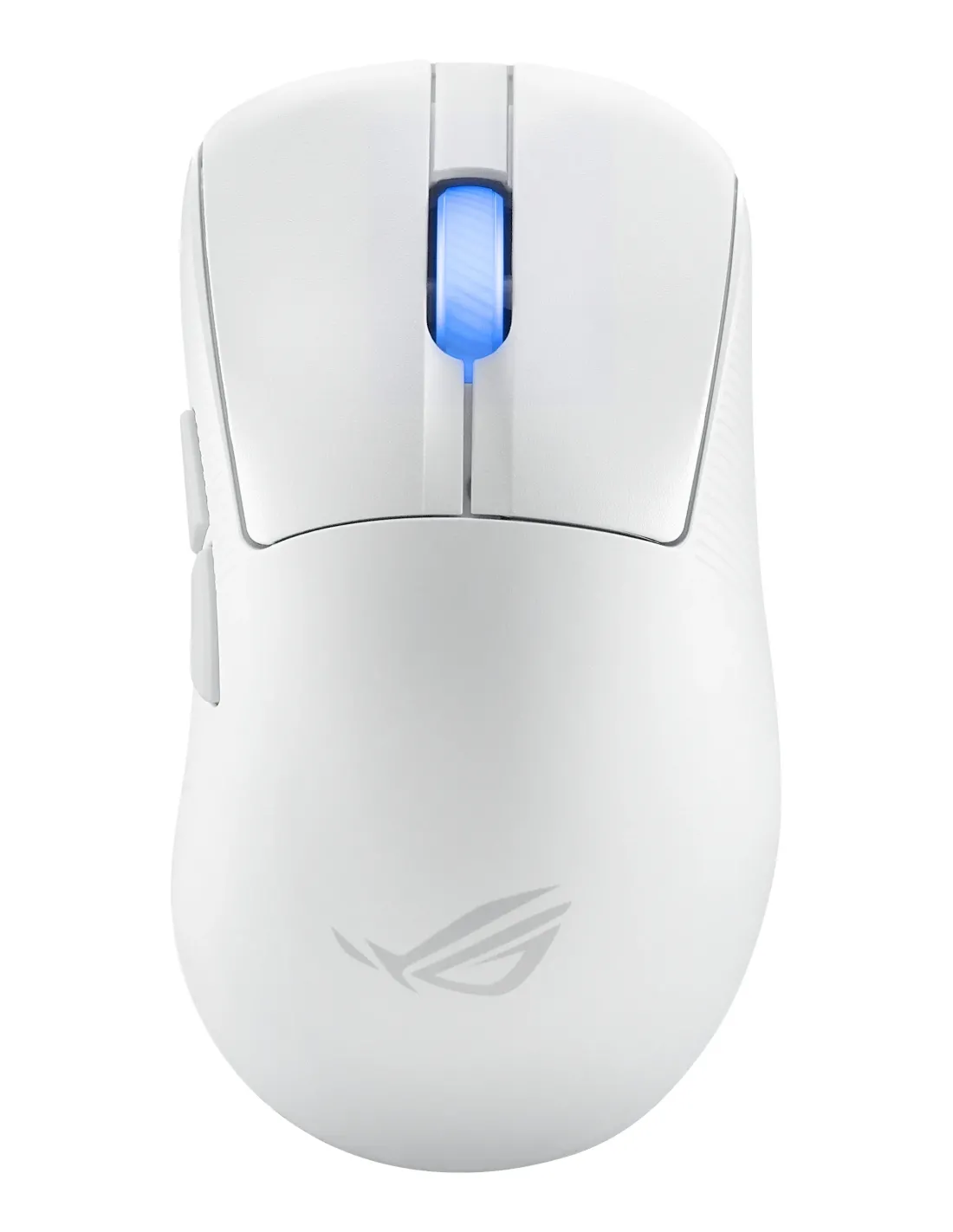 ASUS ROG Keris II Ace Wireless AimPoint White. Fattore di forma: Mano destra. Tecnologia di rilevamento del movimento: Ottico, Interfaccia dispositivo: RF Wireless + Bluetooth + USB Type-A, Risoluzione movimento: 42000 DPI, Tipo di pulsanti: Tasti premuti, Numero di tasti: 4, Tipo di scorimmento: Rotella, Accelerazione (max): 50 G. colore d'illuminazione: Multi. Alimentazione: Batterie/Cavo. Colore del prodotto: Bianco