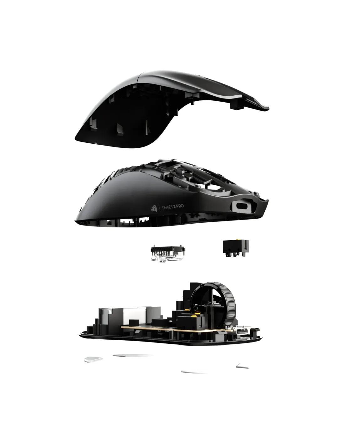 Glorious Gaming Series 2 PRO. Fattore di forma: Mano destra. Tecnologia di rilevamento del movimento: Ottico, Interfaccia dispositivo: RF Wireless + USB Type-C, Risoluzione movimento: 26000 DPI, Tipo di pulsanti: Tasti premuti, Numero di tasti: 6, Tipo di scorimmento: Rotella, Accelerazione (max): 50 G. Alimentazione: Batterie/Cavo. Colore del prodotto: Nero