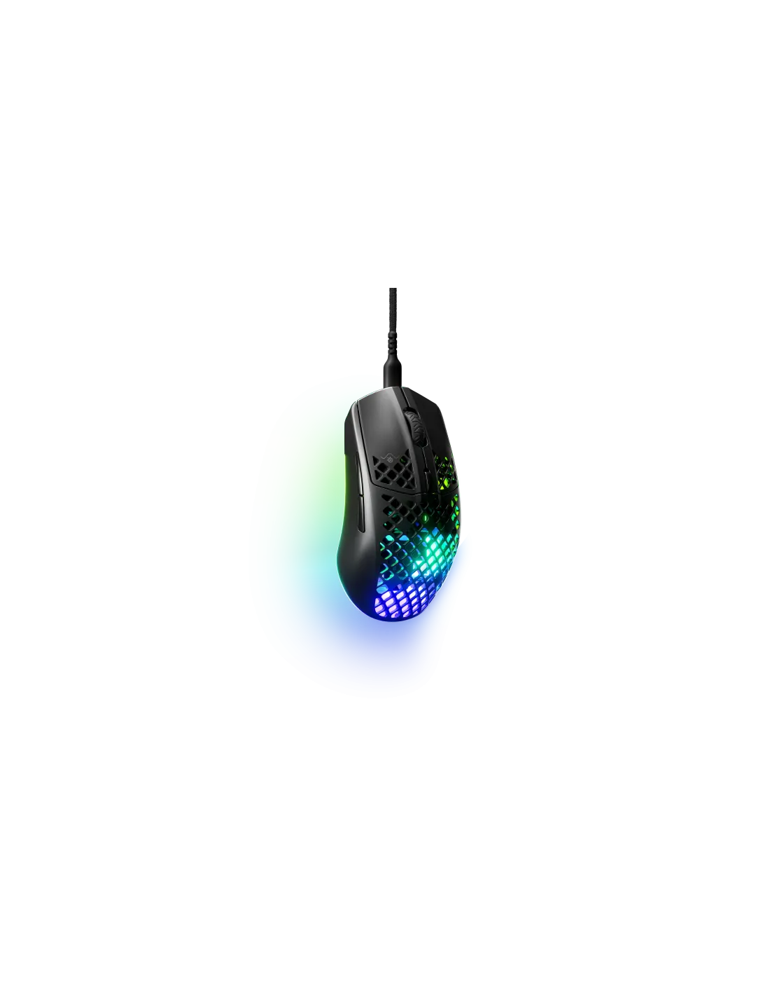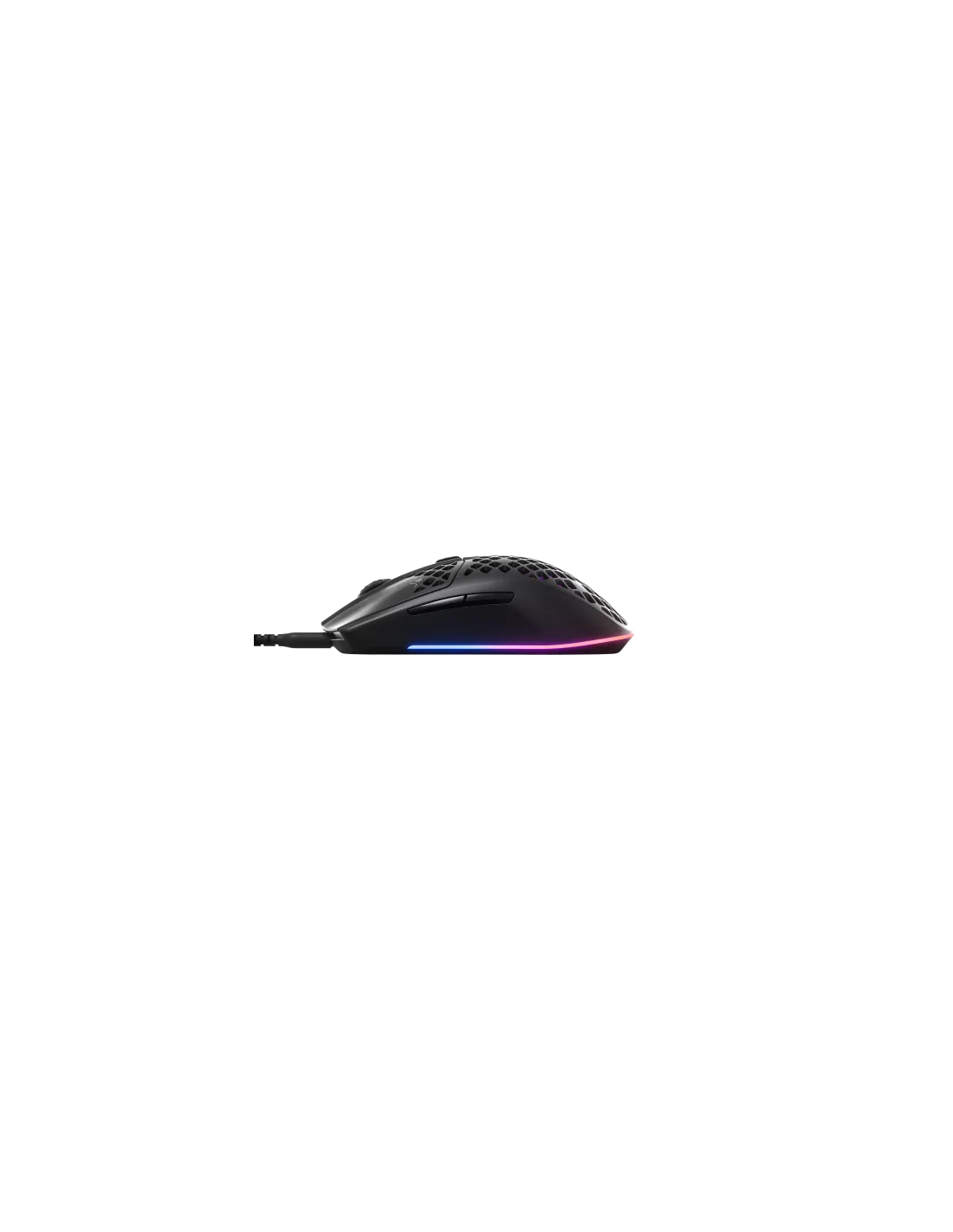 Steelseries Aerox 3 Onyx PC Mouse. Fattore di forma: Mano destra. Tecnologia di rilevamento del movimento: Ottico, Interfaccia dispositivo: USB tipo-C, Risoluzione movimento: 8500 DPI, Tempo di risposta: 1 ms, Tipo di pulsanti: Tasti premuti, Numero di tasti: 6, Tipo di scorimmento: Rotella, Accelerazione (max): 35 G. colore d'illuminazione: Multi. Alimentazione: Cavo. Colore del prodotto: Nero
