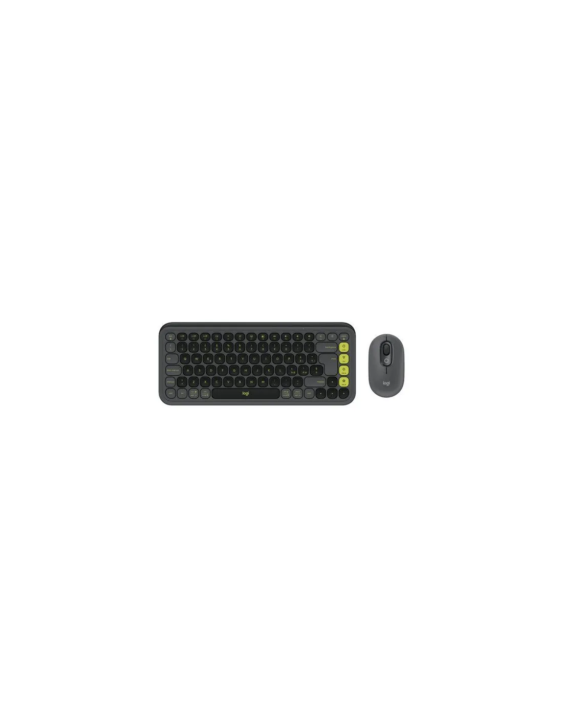 Logitech POP Icon Combo tastiera + Mouse Bluetooth (Grafite, Verde). Fattore di forma tastiera: Mini. Stile tastiera: Dritto. Tecnologia di connessione: Wireless, Interfaccia dispositivo: Bluetooth, Interruttore a chiave per tastiera: Tasto con meccanismo a forbici, Struttura tastiera: QWERTY, Utilizzo raccomandato: Universale. Colore del prodotto: Grafite. Mouse incluso