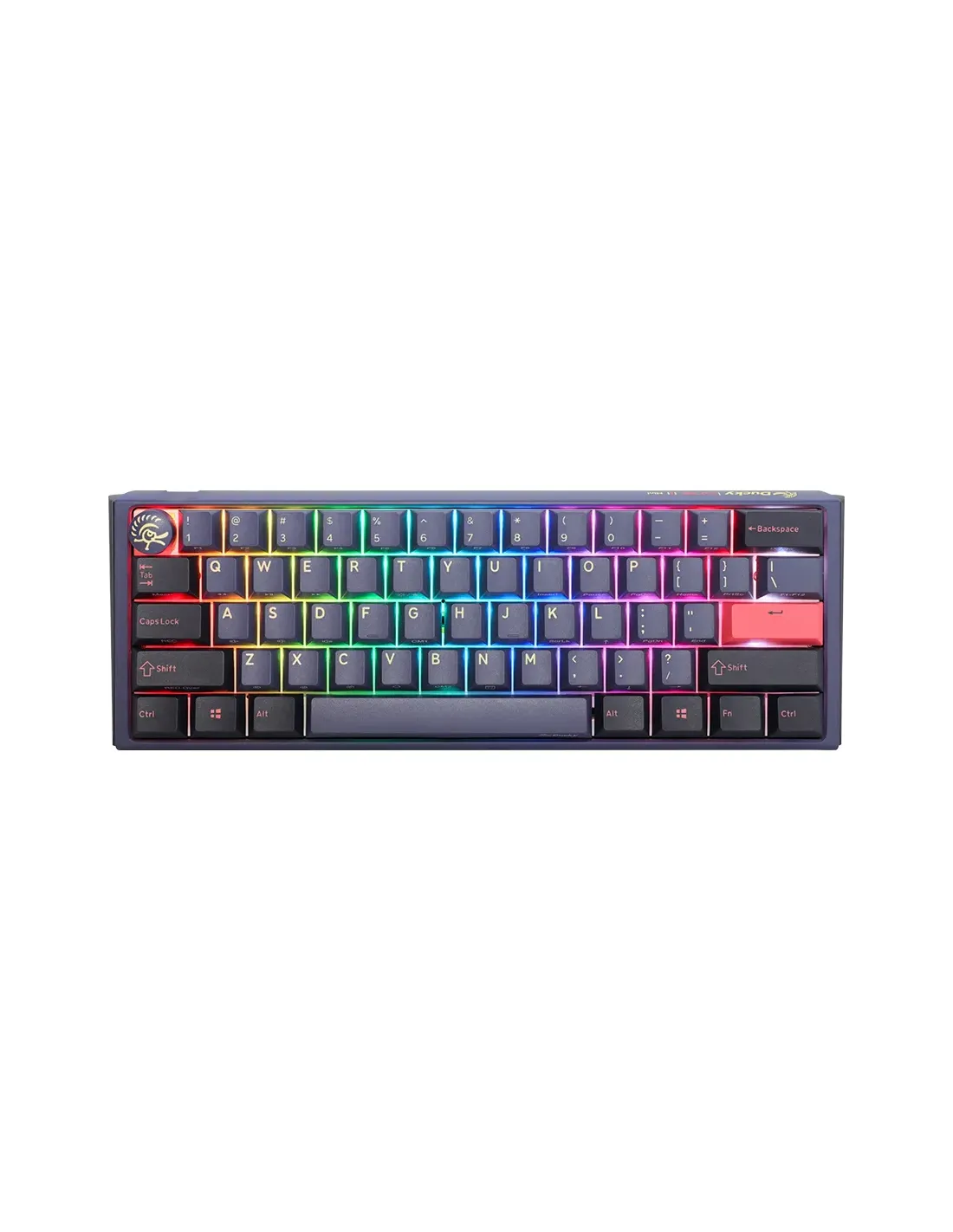Ducky One 3 Mini. Fattore di forma tastiera: Mini. Stile tastiera: Dritto. Tecnologia di connessione: Cablato, Interfaccia dispositivo: USB, Interruttore a chiave per tastiera: Interruttore a chiave meccanica. Tipologia di retroilluminazione: LED RGB. Utilizzo raccomandato: Gaming. Colore del prodotto: Blu