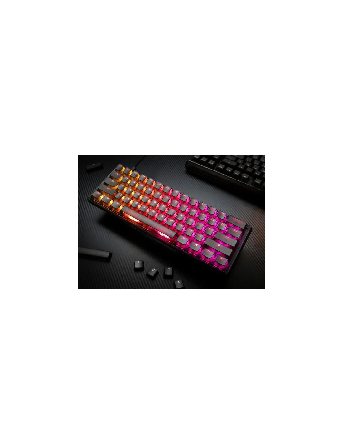 Ducky One 3 Aura Mini. Fattore di forma tastiera: 60%. Stile tastiera: Dritto. Tecnologia di connessione: Cablato, Interfaccia dispositivo: USB, Interruttore a chiave per tastiera: Interruttore a chiave meccanica, Struttura tastiera: QWERTY, Numero pulsanti tastiera: 61. Tipologia di retroilluminazione: LED RGB. Utilizzo raccomandato: Gaming. Colore del prodotto: Nero