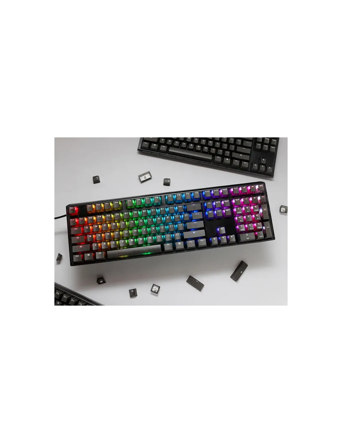 Ducky One 3. Fattore di forma tastiera: Full-size (100%). Stile tastiera: Dritto. Tecnologia di connessione: Cablato, Interfaccia dispositivo: USB, Interruttore a chiave per tastiera: Interruttore a chiave meccanica. Tipologia di retroilluminazione: LED RGB. Utilizzo raccomandato: Gaming. Colore del prodotto: Nero
