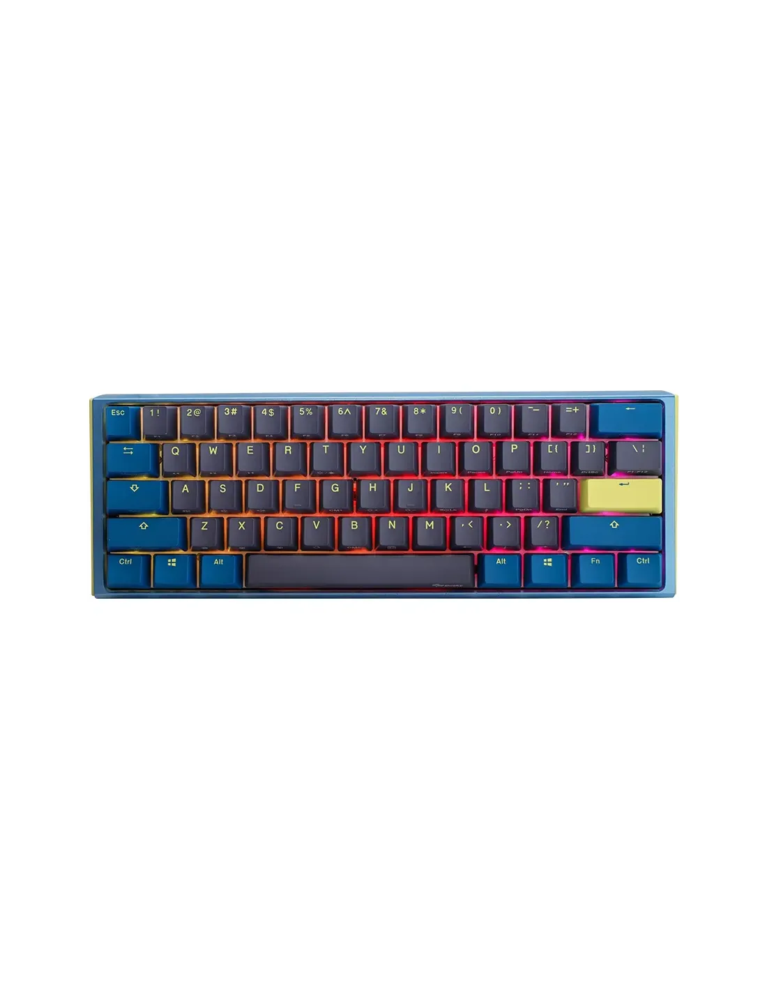 Ducky One 3 Daybreak Mini. Fattore di forma tastiera: Mini. Stile tastiera: Dritto. Tecnologia di connessione: Cablato, Interfaccia dispositivo: USB, Interruttore a chiave per tastiera: Interruttore a chiave meccanica. Tipologia di retroilluminazione: LED RGB. Utilizzo raccomandato: Gaming. Colore del prodotto: Nero, Blu, Verde