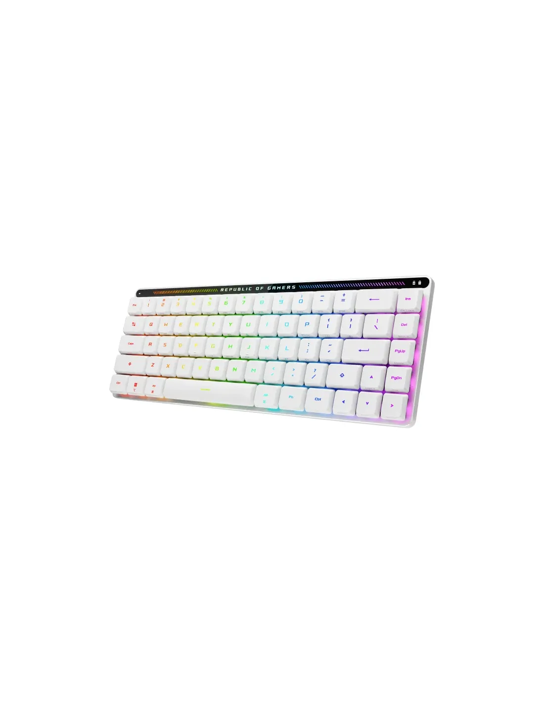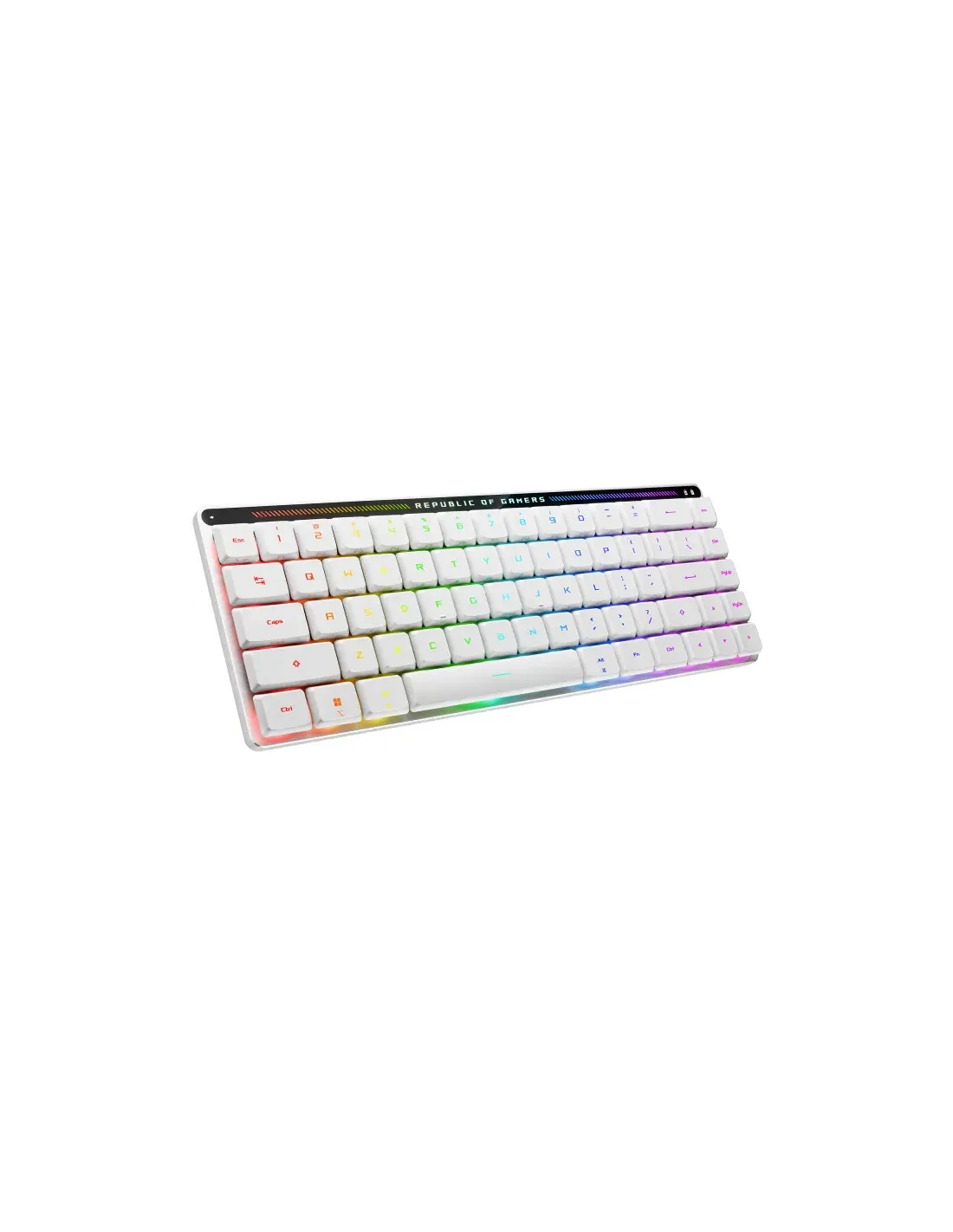 ASUS ROG Falchion RX Low Profile. Fattore di forma tastiera: 65%. Stile tastiera: Dritto. Tecnologia di connessione: Con cavo e senza cavo, Interfaccia dispositivo: USB + RF Wireless + Bluetooth, Interruttore a chiave per tastiera: Interruttore ottico a chiave, Struttura tastiera: QWERTZ. Tipologia di retroilluminazione: LED RGB. Utilizzo raccomandato: Gaming. Colore del prodotto: Bianco