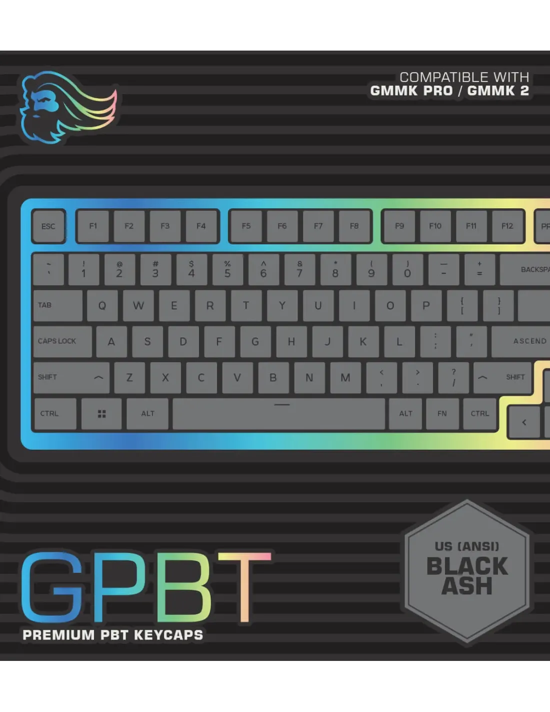 Glorious Gaming GPBT. Tipo di prodotto: Coperchio per tastiera, Tipo di dispositivo: Tastiera, Compatibilità marca: Glorious PC Gaming Race, Compatibilità: GMMK 1, GMMK 2, GMMK PRO, Materiali: Polibutilene Tereftalato (PBT), Colore del prodotto: Nero