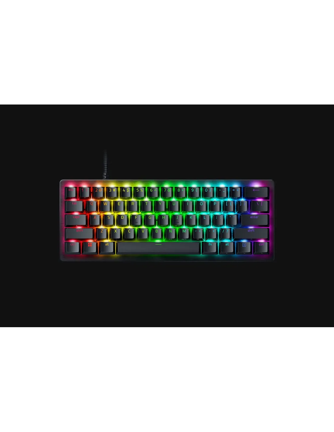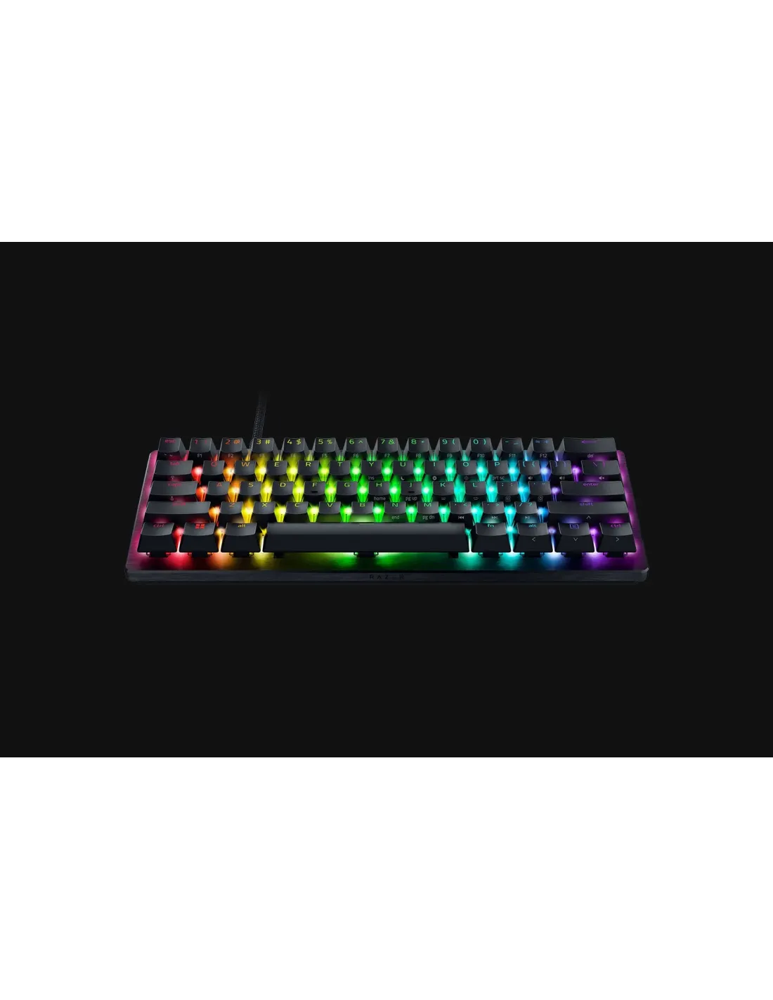Razer Huntsman V3 Pro Mini. Fattore di forma tastiera: 60%. Stile tastiera: Curvo. Tecnologia di connessione: Cablato, Interfaccia dispositivo: USB, Interruttore a chiave per tastiera: Interruttore ottico a chiave, Struttura tastiera: QWERTZ. Tipologia di retroilluminazione: LED RGB. Utilizzo raccomandato: Gaming. Colore del prodotto: Nero