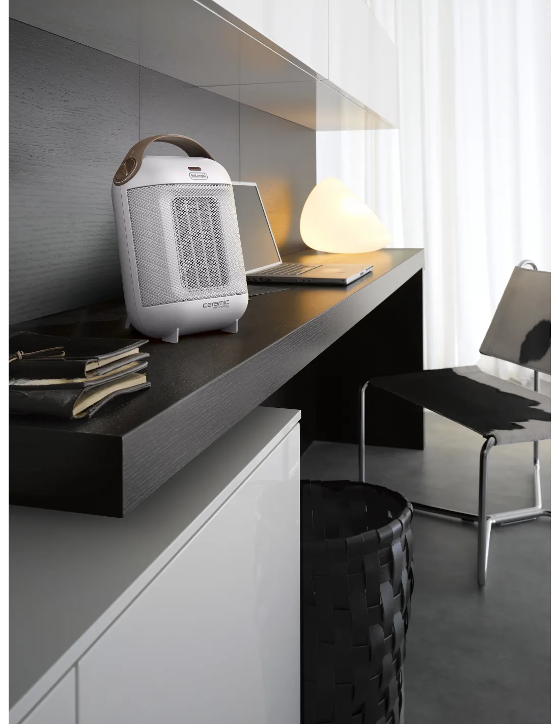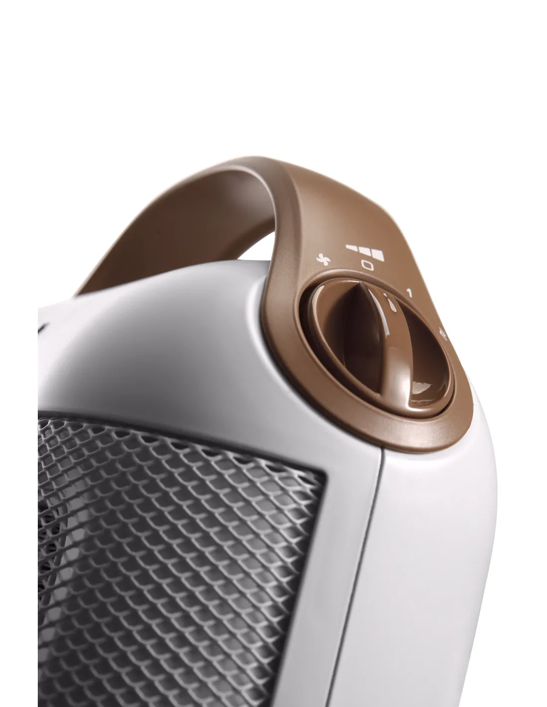 De’LonghiDe’Longhi Capsule HFX30C18.IW, Riscaldatore ambiente elettrico con ventilatore, Ceramica, CE, Interno, Scrivania, Pavimento, Tavolo, Marrone, Bianco