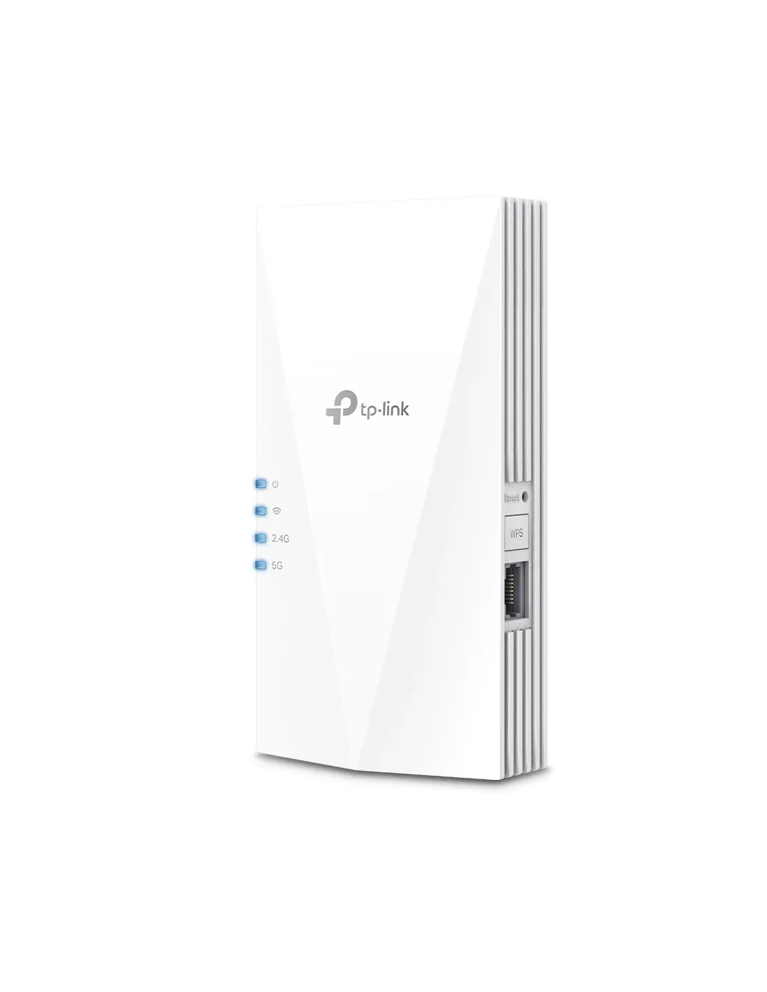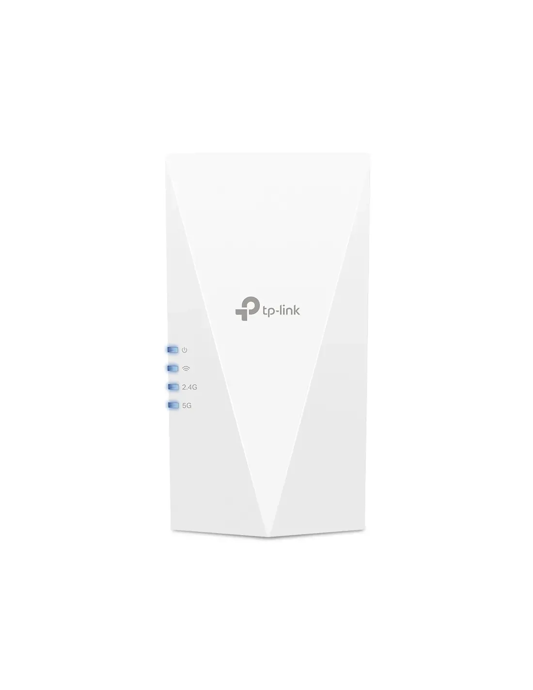 TP-Link RE3000X. Velocità massima di trasferimento dati: 2402 Mbit/s. Design dell'antenna: Interno. Banda Wi-Fi: Dual-band (2.4 GHz/5 GHz), Wi-Fi standard: Wi-Fi 6 (802.11ax), Intervallo di trasferimento dei dati WLAN (max): 2402 Mbit/s. Tipo di interfaccia LAN Ethernet: Gigabit Ethernet, Velocità trasferimento Ethernet LAN: 10,100,1000 Mbit/s, Standard di rete: IEEE 802.11a, IEEE 802.11ac, IEEE 802.11ax, IEEE 802.11b, IEEE 802.11g, IEEE 802.11n. Tecnologia di connessione: Con cavo e senza cavo