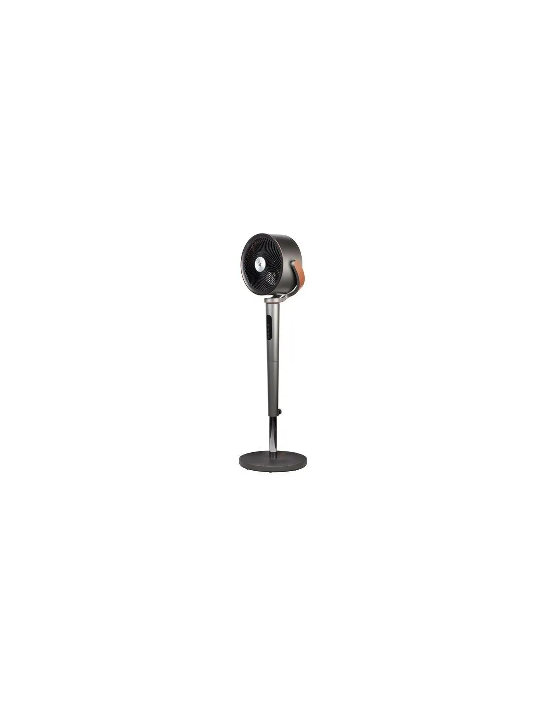 Circolatore d’aria con telecomando e luce ambientale. Potente flusso d’aria. Altezza regolabile 95-115 cm. 12 velocità, timer 12 ore e pannello comandi touch. Oscillazione 3D: oscillazione orizzontale e verticale automatica. Testa inclinabile fino a 90° per una migliore circolazione dell’aria all’interno degli ambienti. Ionizzatore e diffusore di essenze. Finiture in similpelle e inserti color rame.
