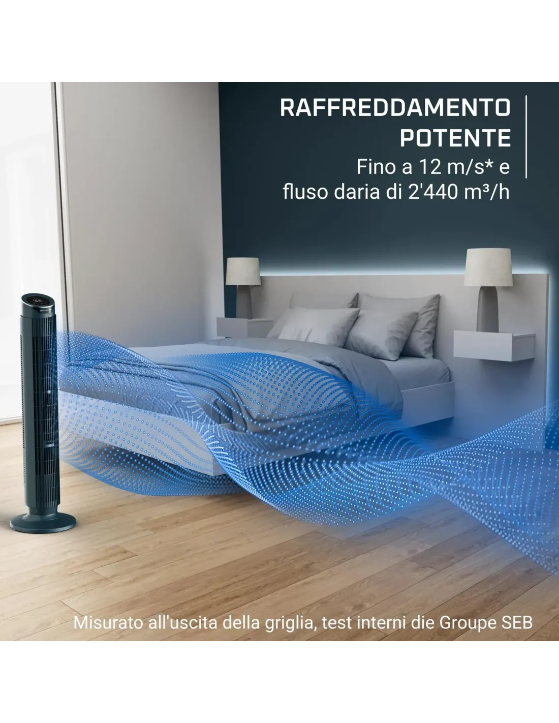RowentaRowenta Eole Silence Force Ventilatore a Torre, Raffrescamento Intenso, Silenzioso VU7050F0, Ventilatore a torretta, Blu scuro, Pavimento, 20 dB, 2440 m³/h, 90°