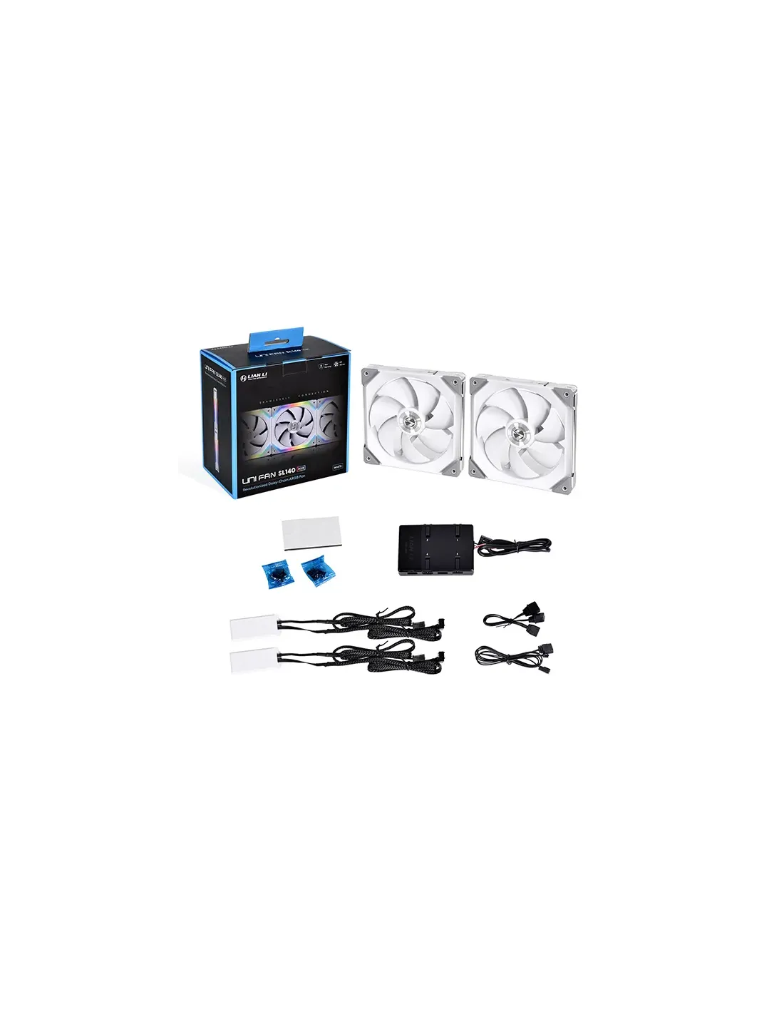 Lian Li Uni Fan SL140. Tipo: Ventilatore, Diametro del ventilatore: 14 cm, Velocità (minima) di rotazione: 500 Giri/min, Velocità (massima) di rotazione: 1500 Giri/min, pressione dell'aria massima: 1,67 mmH2O, Tipo di cuscinetto: Cuscinetto fluido dinamico (FDB). Voltaggio: DC 6. Colore del prodotto: Bianco