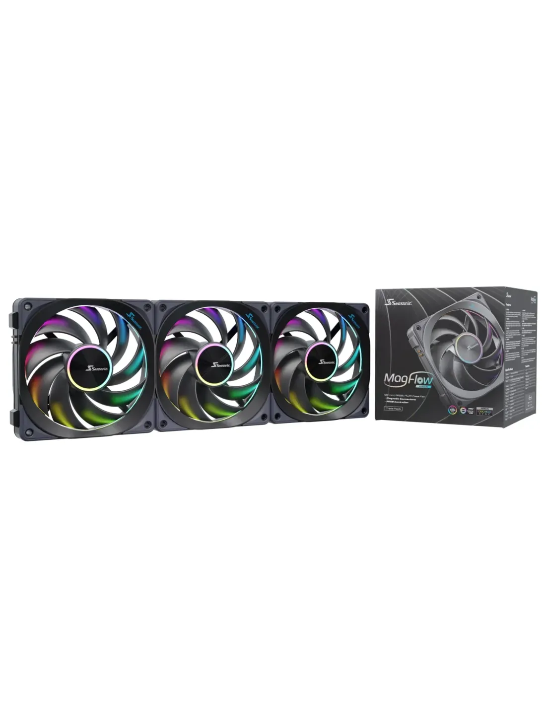 Seasonic MagFlow ARGB Case per computer Ventilatore 12 cm Nero 3 pz
