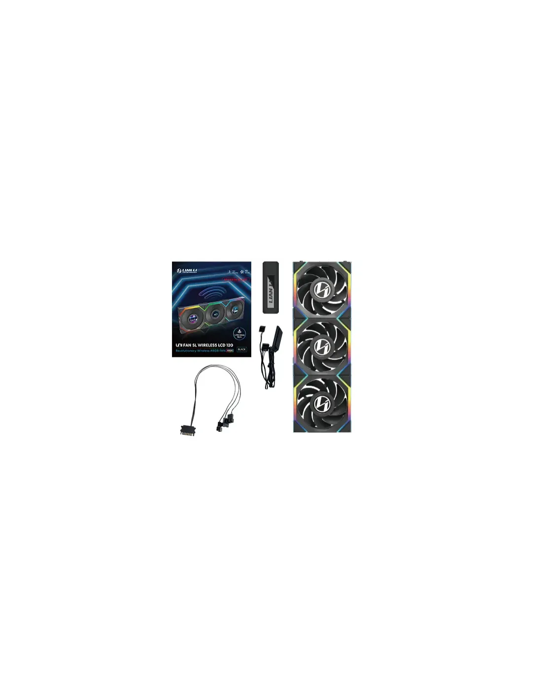 Lian Li UNI FAN SL Wireless LCD 120 Reverse Blade. Tipo: Ventilatore, Diametro del ventilatore: 12 cm, pressione dell'aria massima: 2,1 mmH2O, Tipo di cuscinetto: Cuscinetto fluido dinamico (FDB). Voltaggio: 5 - 12 V. Colore del prodotto: Nero