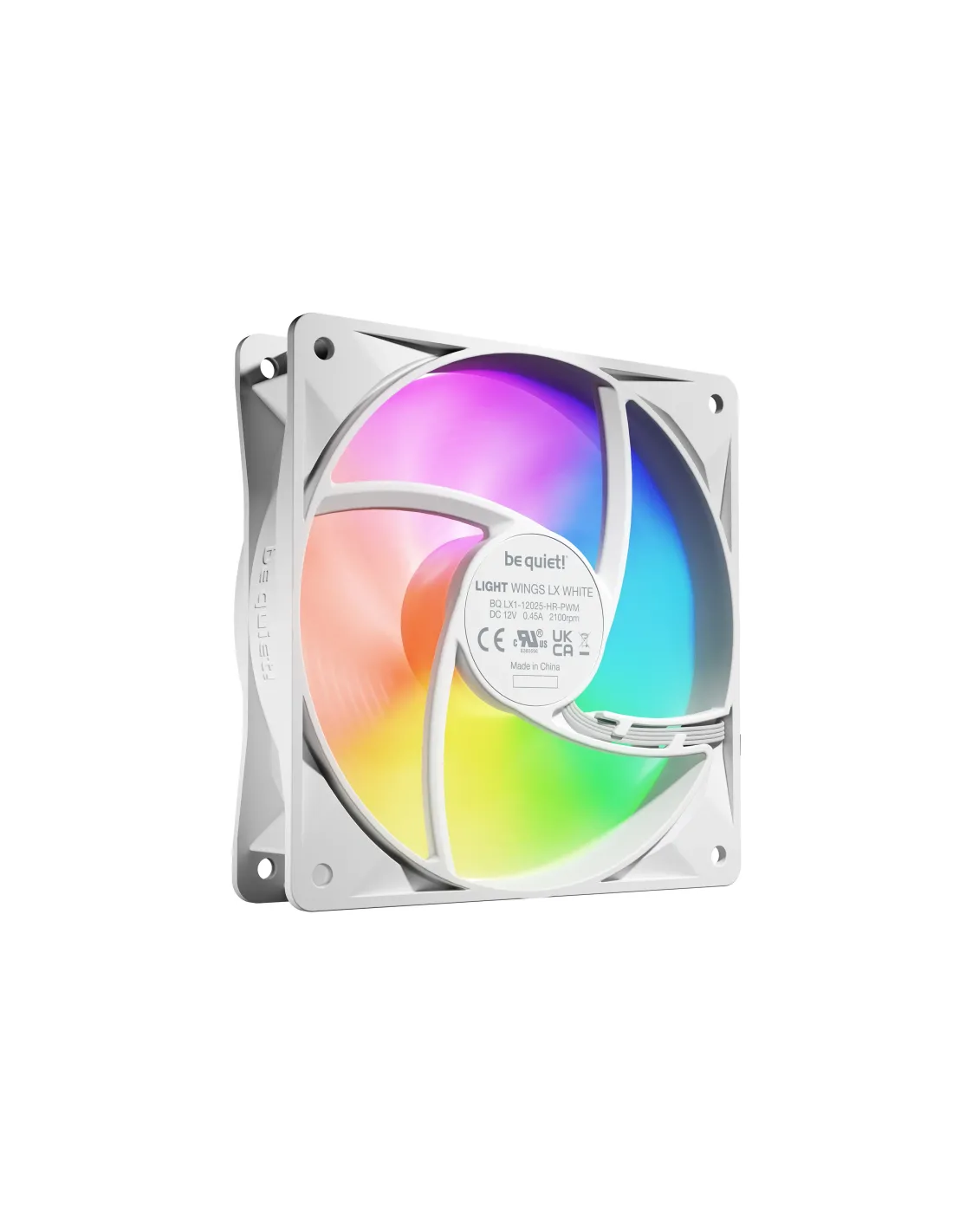 be quiet! LIGHT WINGS LX 120mm PWM High Speed 3-Pack White. Tipo: Ventilatore, Diametro del ventilatore: 12 cm, Velocità (massima) di rotazione: 2100 Giri/min, Flusso d'aria: 105,1 m³/h, pressione dell'aria massima: 2,51 mmH2O, Tipo di cuscinetto: Cuscinetto da strisciamento. Voltaggio: 5 - 13.2 V. Colore del prodotto: Bianco