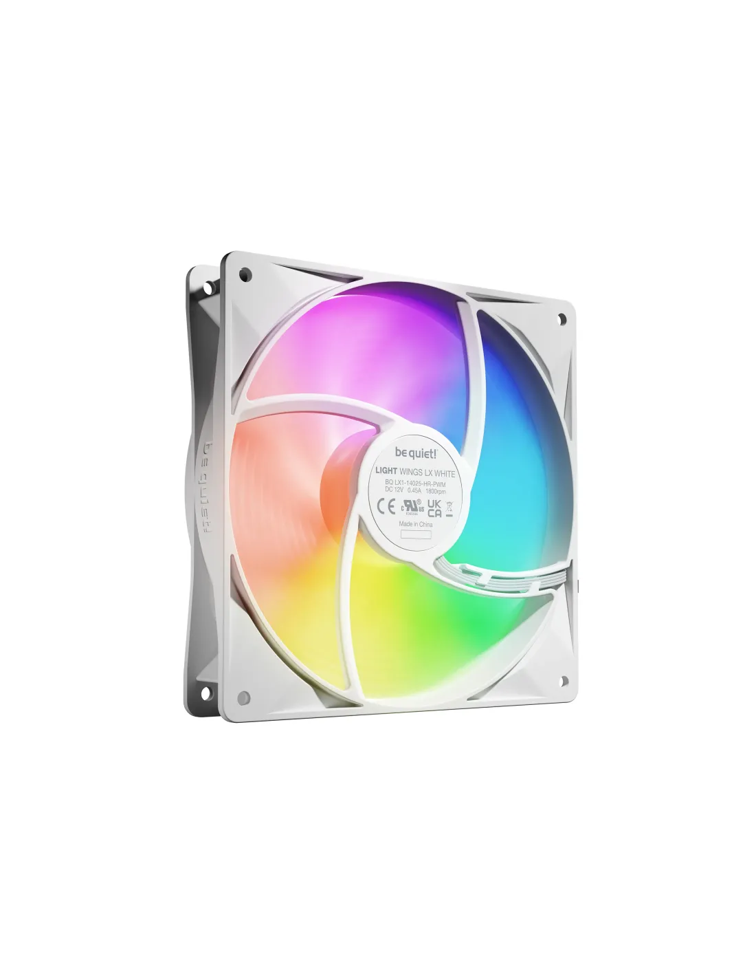be quiet! LIGHT WINGS LX 140mm PWM High Speed 3-Pack White. Tipo: Ventilatore, Diametro del ventilatore: 14 cm, Velocità (massima) di rotazione: 1800 Giri/min, Flusso d'aria: 127,9 m³/h, pressione dell'aria massima: 2,45 mmH2O, Tipo di cuscinetto: Cuscinetto da strisciamento. Voltaggio: 5 - 13.2 V. Colore del prodotto: Bianco