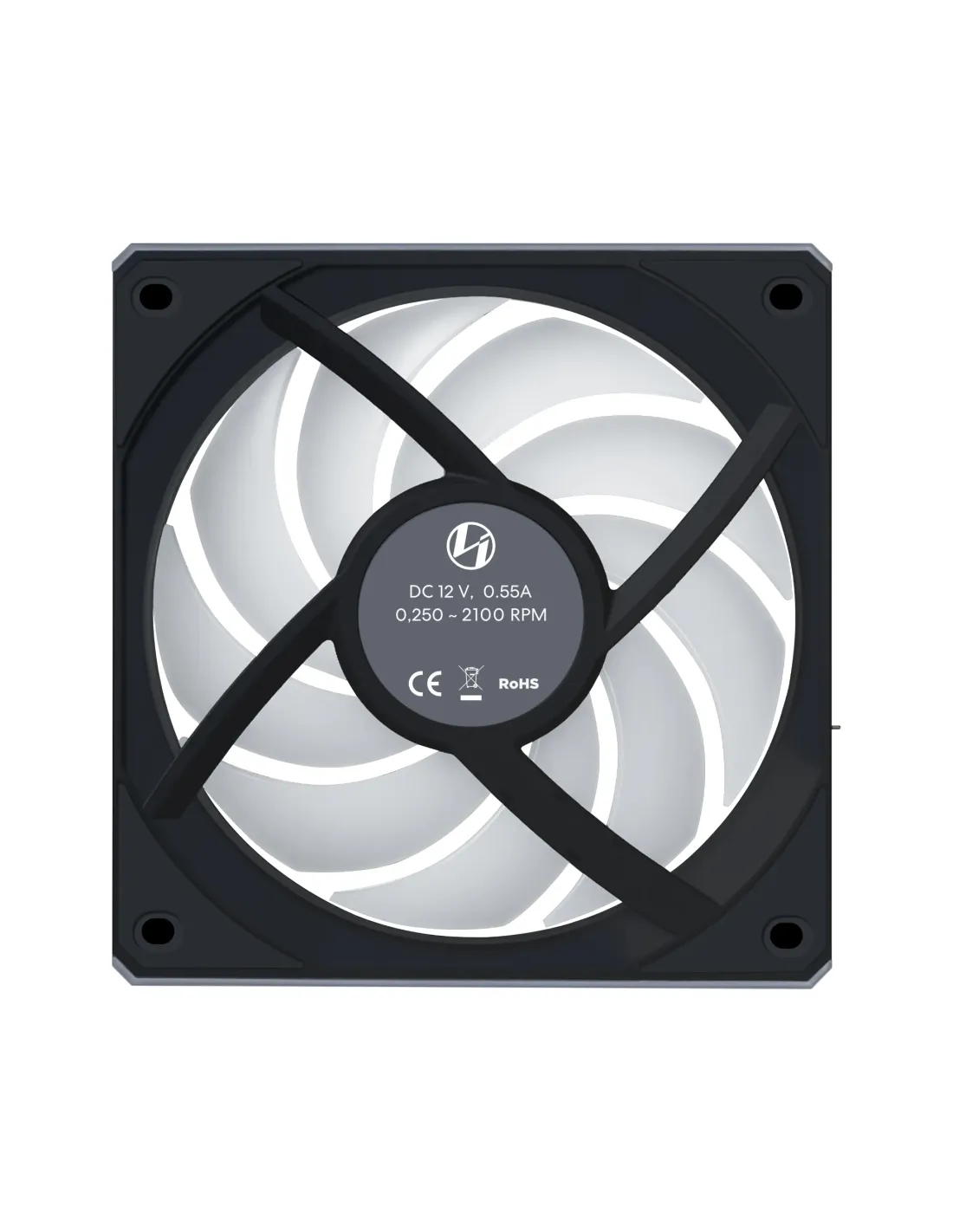 Lian Li 12RCL1W3B. Tipo: Ventilatore, Diametro del ventilatore: 12 cm, Velocità (minima) di rotazione: 0,25 Giri/min, Velocità (massima) di rotazione: 2150 Giri/min, pressione dell'aria massima: 2,52 mmH2O, Tipo di cuscinetto: Cuscinetto fluido dinamico (FDB). Voltaggio: 12 V. Larghezza: 120 mm, Profondità: 28 mm, Altezza: 120 mm. Colore del prodotto: Nero