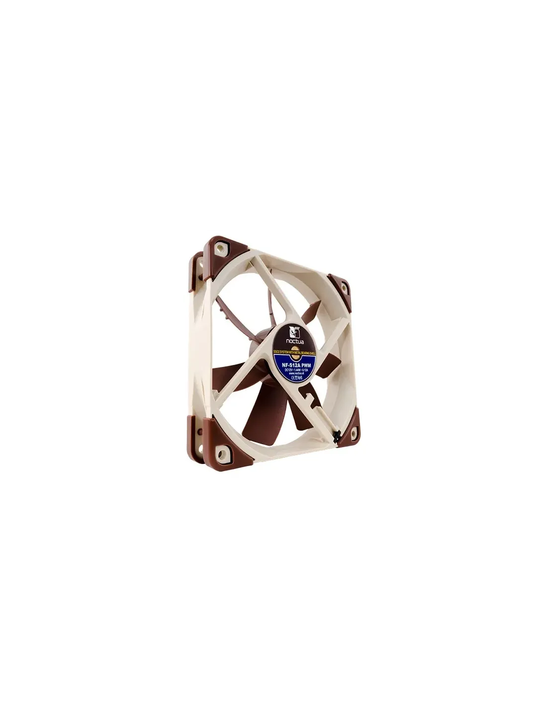 Noctua NF-S12A PWM. Tipo: Ventilatore, Diametro del ventilatore: 12 cm, Numero di velocità: 3, Velocità (minima) di rotazione: 300 Giri/min, Velocità (massima) di rotazione: 1200 Giri/min, Flusso d'aria: 107,5 m³/h, pressiore dell'aria minima: 0,73 mmH2O, pressione dell'aria massima: 1,19 mmH2O. Voltaggio: 12 V. Larghezza: 120 mm, Profondità: 25 mm, Altezza: 120 mm. Colore del prodotto: Beige, Marrone