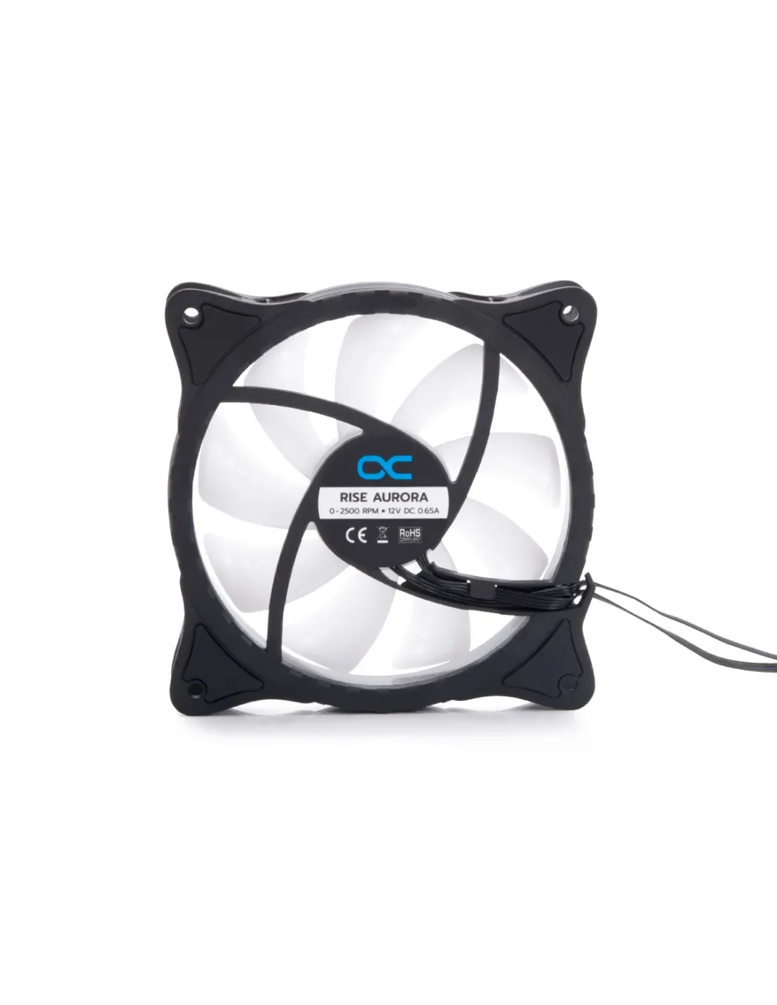 Alphacool Rise Aurora. Tipo: Ventilatore, Diametro del ventilatore: 12 cm, Velocità (massima) di rotazione: 2600 Giri/min, Flusso d'aria: 118,9 m³/h, pressione dell'aria massima: 2 mmH2O. Larghezza: 120 mm, Profondità: 25 mm, Altezza: 120 mm. Colore del prodotto: Nero, Translucent