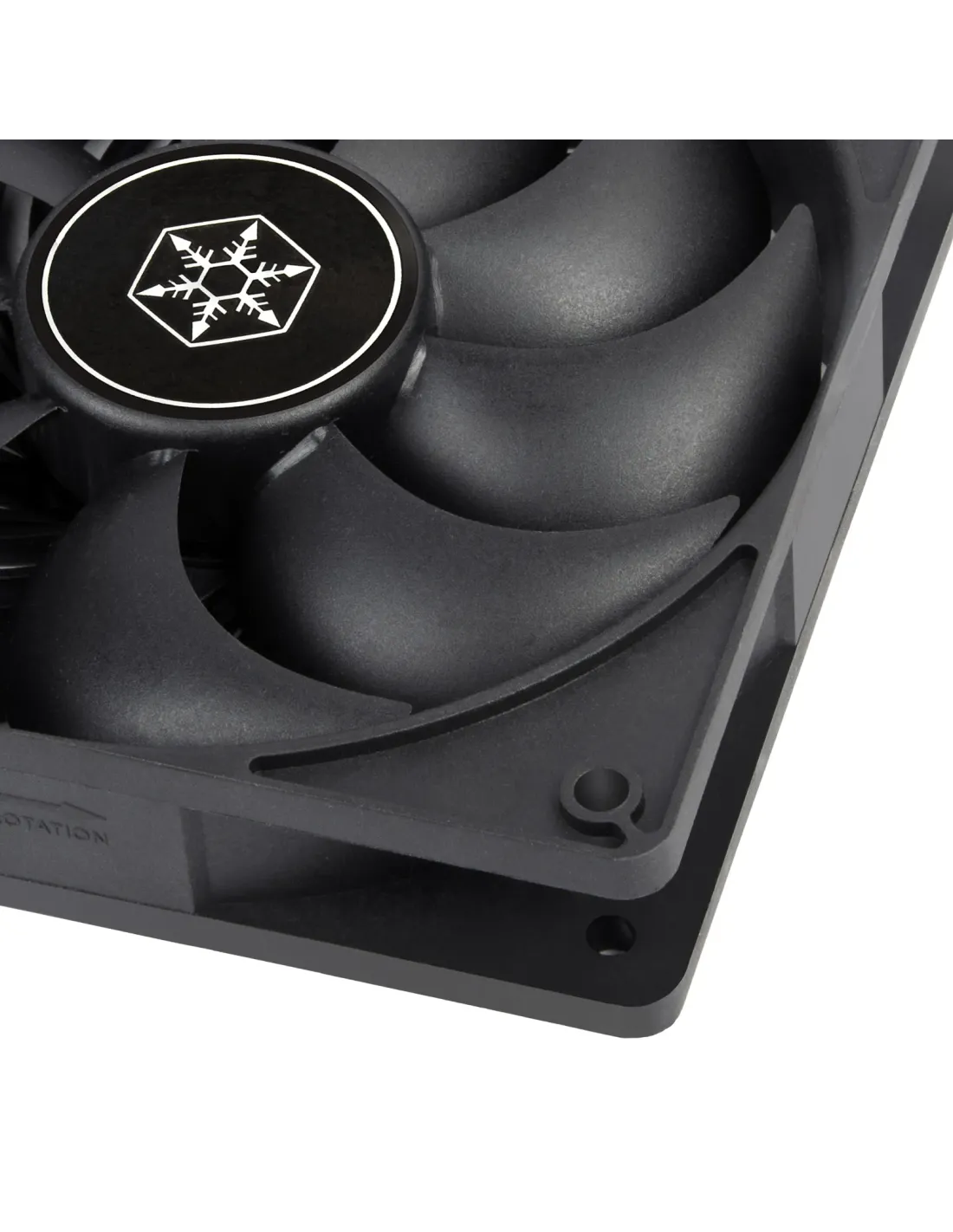 Silverstone Air Penetrator 120i. Tipo: Raffreddatore d'aria, Diametro del ventilatore: 12 cm, Velocità (massima) di rotazione: 1350 Giri/min, pressione dell'aria massima: 1,08 mmH2O, Tipo di cuscinetto: Idraulico. Larghezza: 120 mm, Profondità: 120 mm, Altezza: 25 mm. Colore del prodotto: Nero