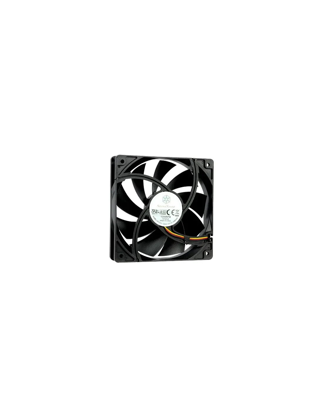 Silverstone FN121-P. Tipo: Ventilatore, Diametro del ventilatore: 12 cm, Velocità (massima) di rotazione: 1200 Giri/min, pressione dell'aria massima: 1,12 mmH2O. Voltaggio: 13.8 V. Larghezza: 120 mm, Profondità: 25 mm, Altezza: 120 mm. Colore del prodotto: Nero