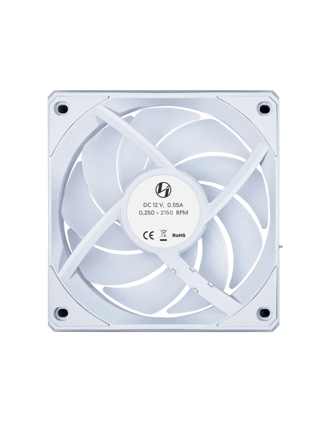 Lian Li 12CL1. Tipo: Ventilatore, Diametro del ventilatore: 12 cm, Velocità (minima) di rotazione: 0,25 Giri/min, Velocità (massima) di rotazione: 2150 Giri/min, pressione dell'aria massima: 2,52 mmH2O, Tipo di cuscinetto: Cuscinetto fluido dinamico (FDB). Voltaggio: 12 V. Larghezza: 120 mm, Profondità: 28 mm, Altezza: 120 mm. Colore del prodotto: Bianco