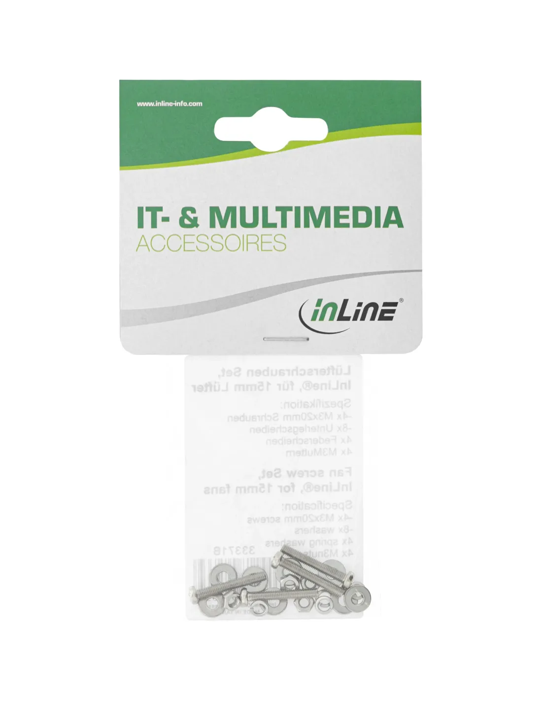 InLine Viti Ventole M3x20mm, con rondelle, dadi, distanziali, 4pcs. Colore del prodotto: Argento