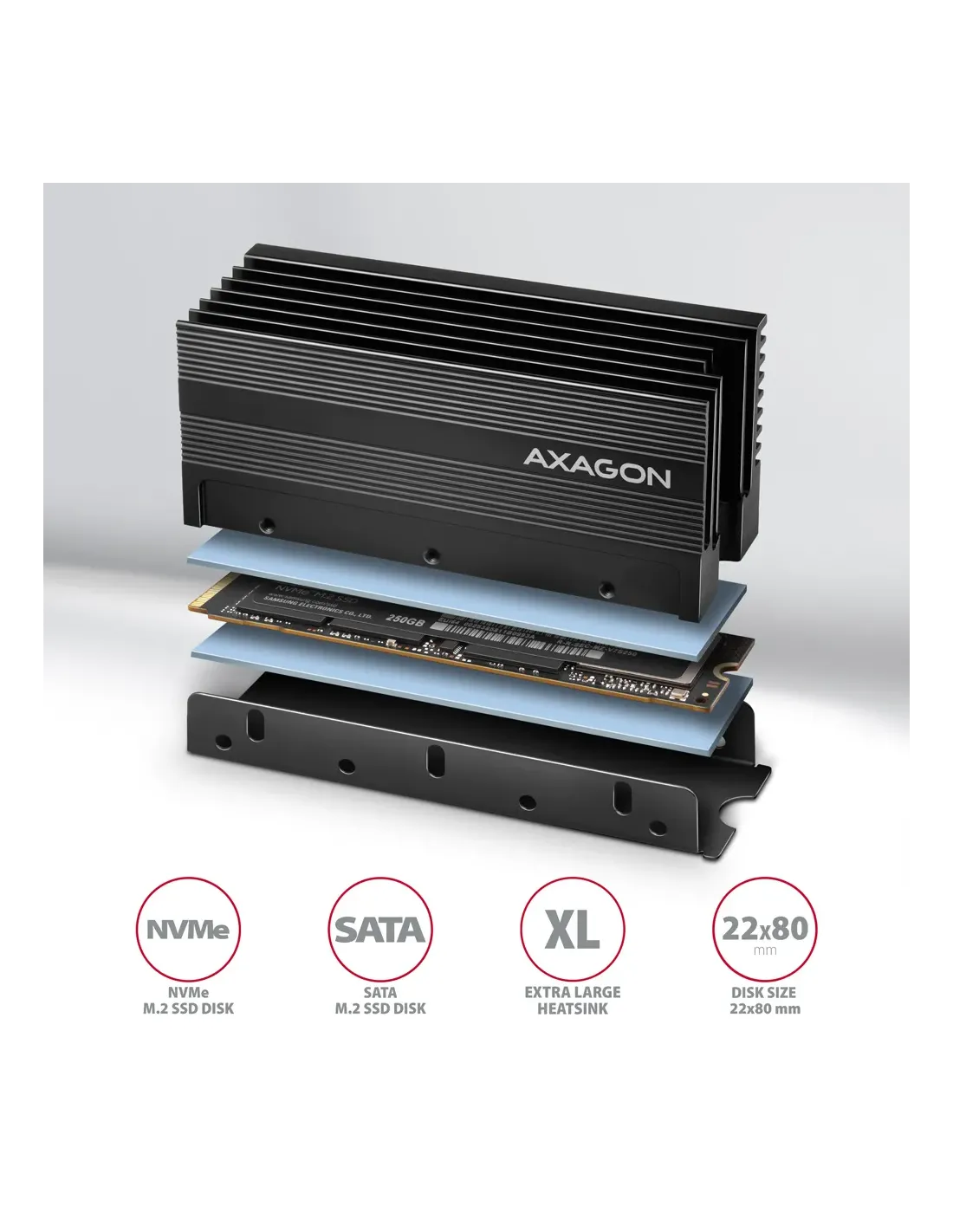 Axagon CLR-M2XL. Tipo: Dissipatore di calore/Radiatore. Larghezza: 76 mm, Profondità: 24 mm, Altezza: 36 mm. Colore del prodotto: Nero