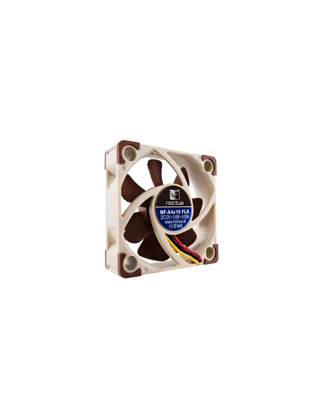 Noctua NF-A4x10 FLX. Tipo: Ventilatore, Diametro del ventilatore: 4 cm, Velocità (minima) di rotazione: 3700 Giri/min, Velocità (massima) di rotazione: 4500 Giri/min, Flusso d'aria: 8,2 m³/h, pressiore dell'aria minima: 1,21 mmH2O, pressione dell'aria massima: 1,78 mmH2O. Larghezza: 40 mm, Profondità: 40 mm, Altezza: 10 mm