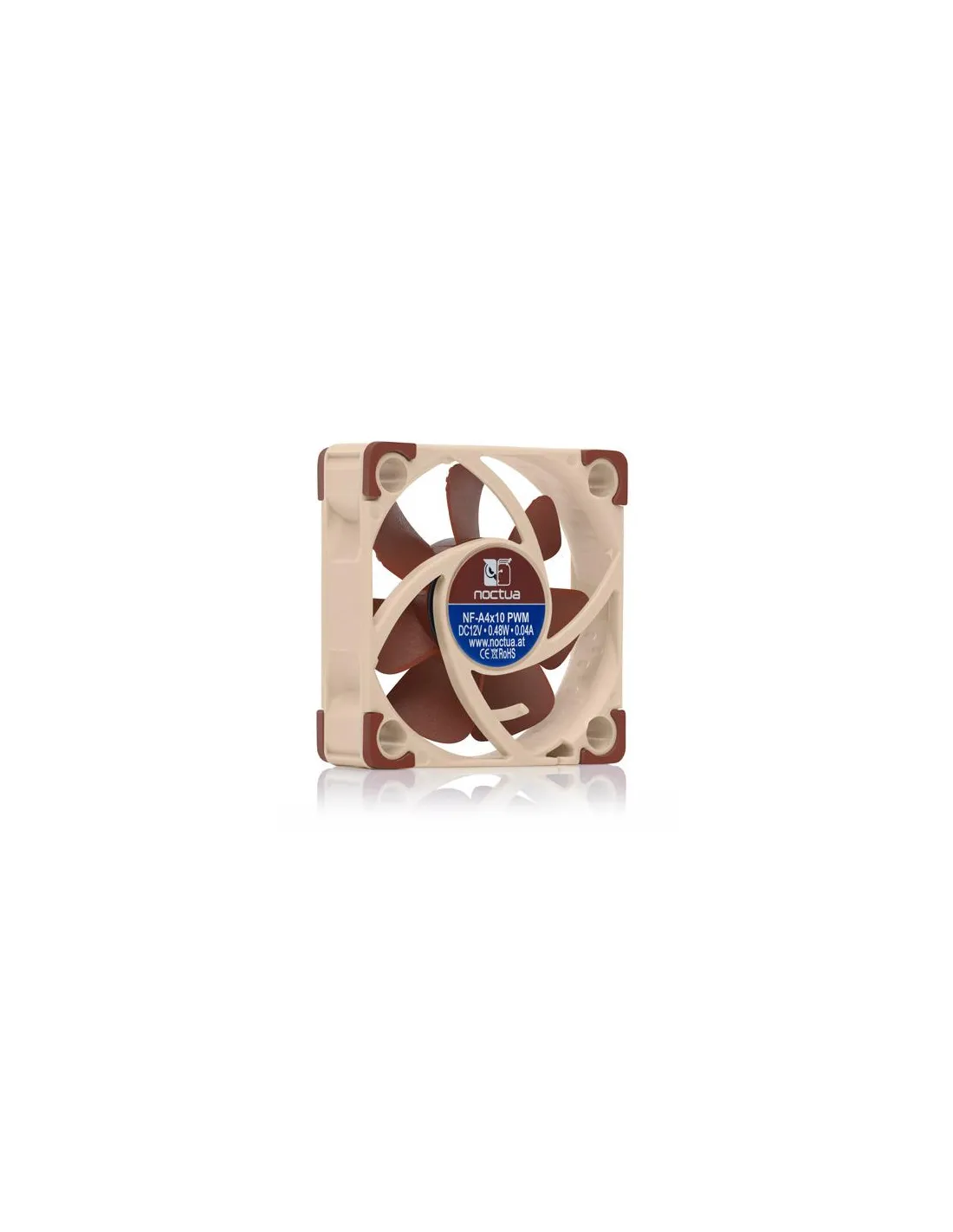 Noctua NF A4x10 PWM. Tipo: Ventilatore, Diametro del ventilatore: 4 cm, Velocità (minima) di rotazione: 1000 Giri/min, Velocità (massima) di rotazione: 5000 Giri/min, Flusso d'aria: 8,9 m³/h, pressione dell'aria massima: 1,95 mmH2O, Tipo di cuscinetto: Self-Stabilising Oil-pressure Bearing (SSO). Voltaggio: 12 V. Colore del prodotto: Beige, Rosso